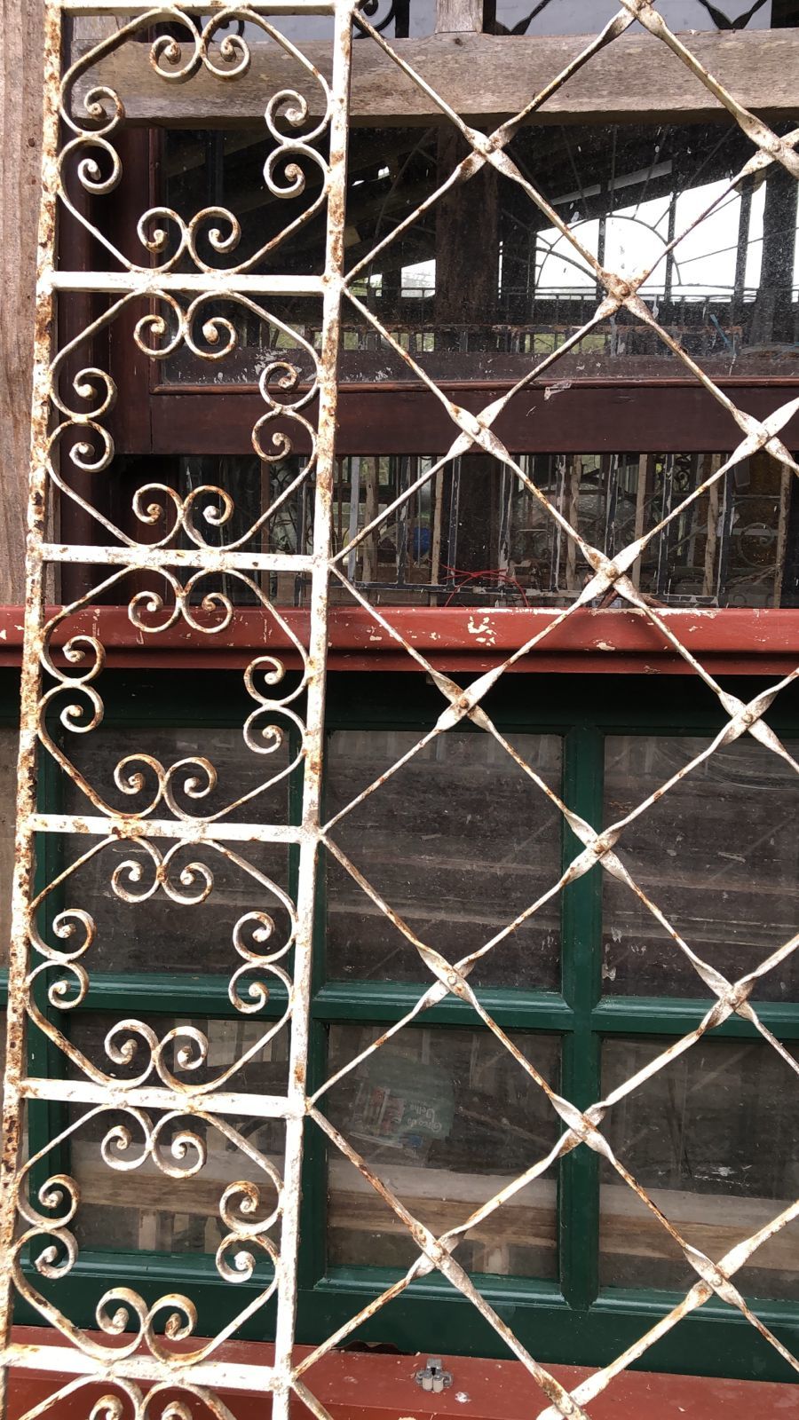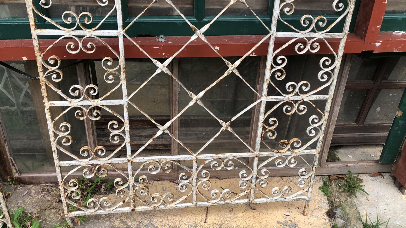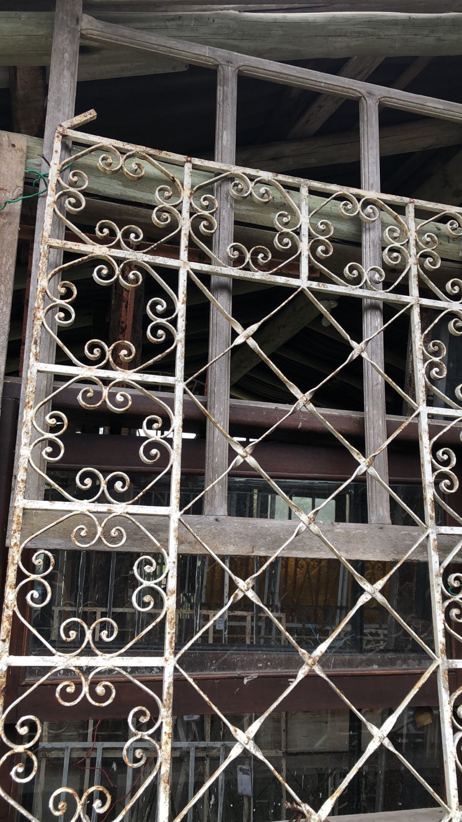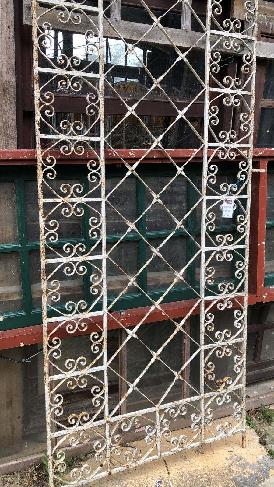 Grade de ferro fundido de demolição, peça antiga com ricos detalhes ornamentais que evidenciam seu charme e originalidade.