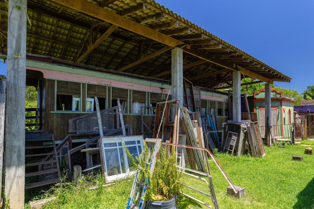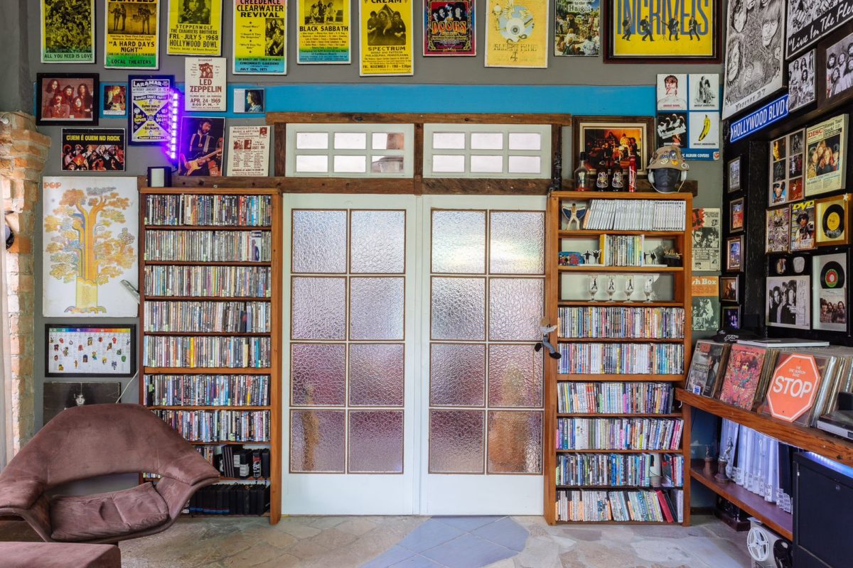 Os ambientes foram pensados a partir de diversos materiais de demolição, as paredes foram adaptadas para as janelas e portas antigas e a decoração que foi selecionada por anos encontrou o seu lugar.