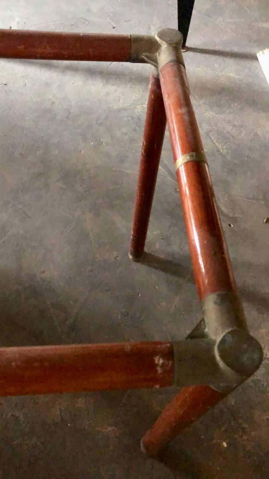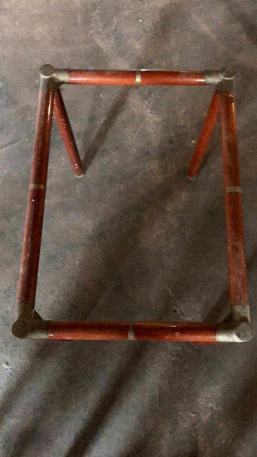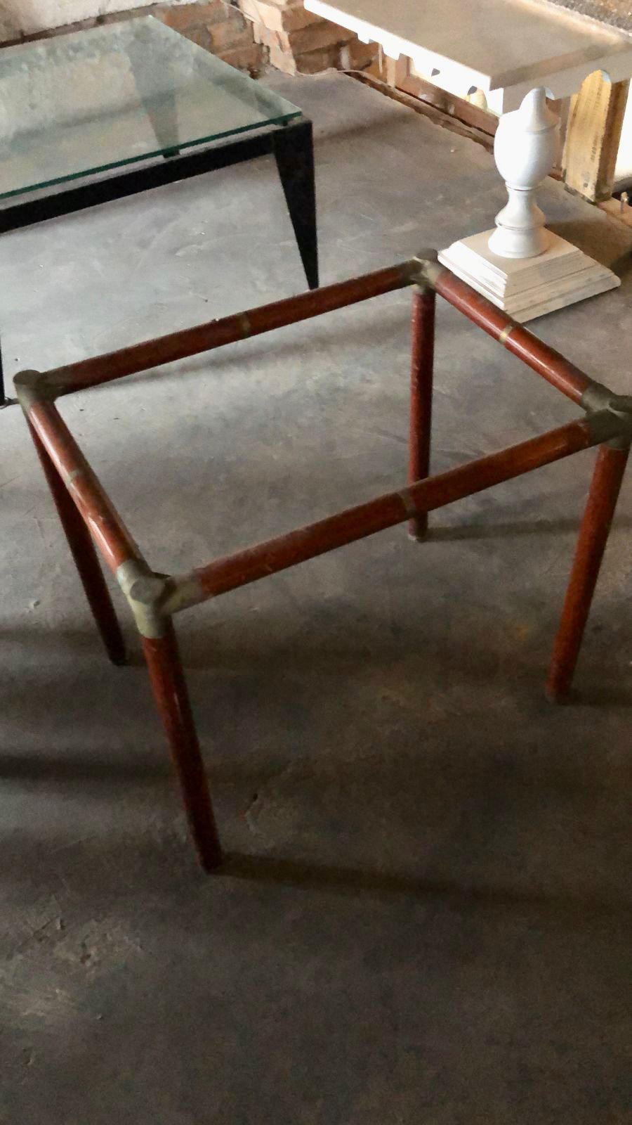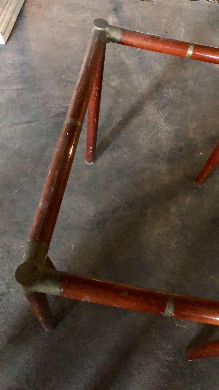 Feito de madeira maciça, sem acabamento. Possui detalhes de ouro velho nas junções.
