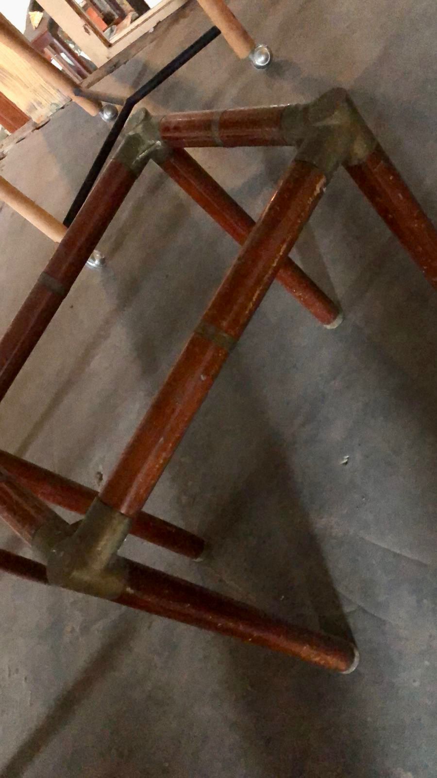 Feita de madeira maciça, sem acabamento, formato retangular. Possui detalhes de ouro velho nas junções.