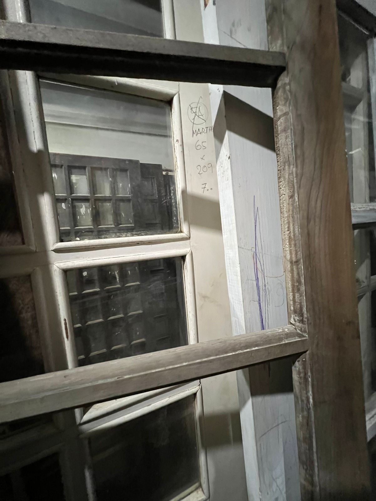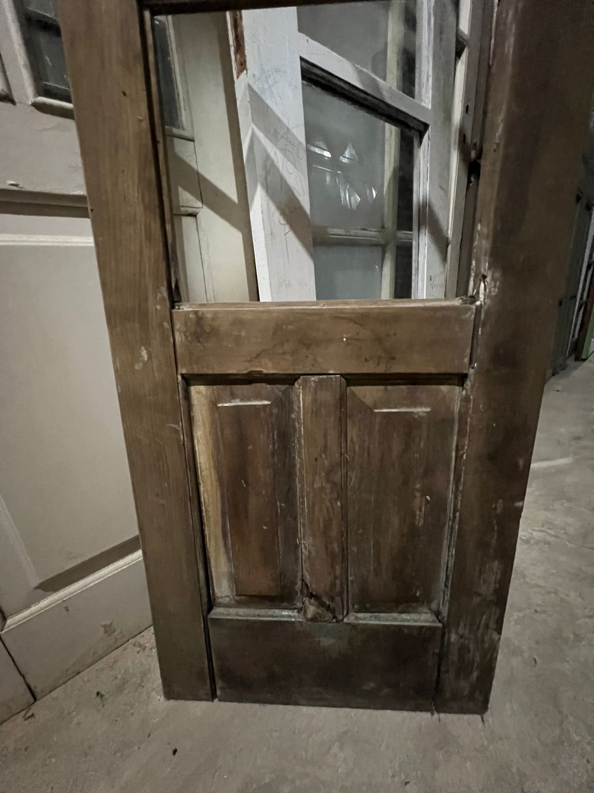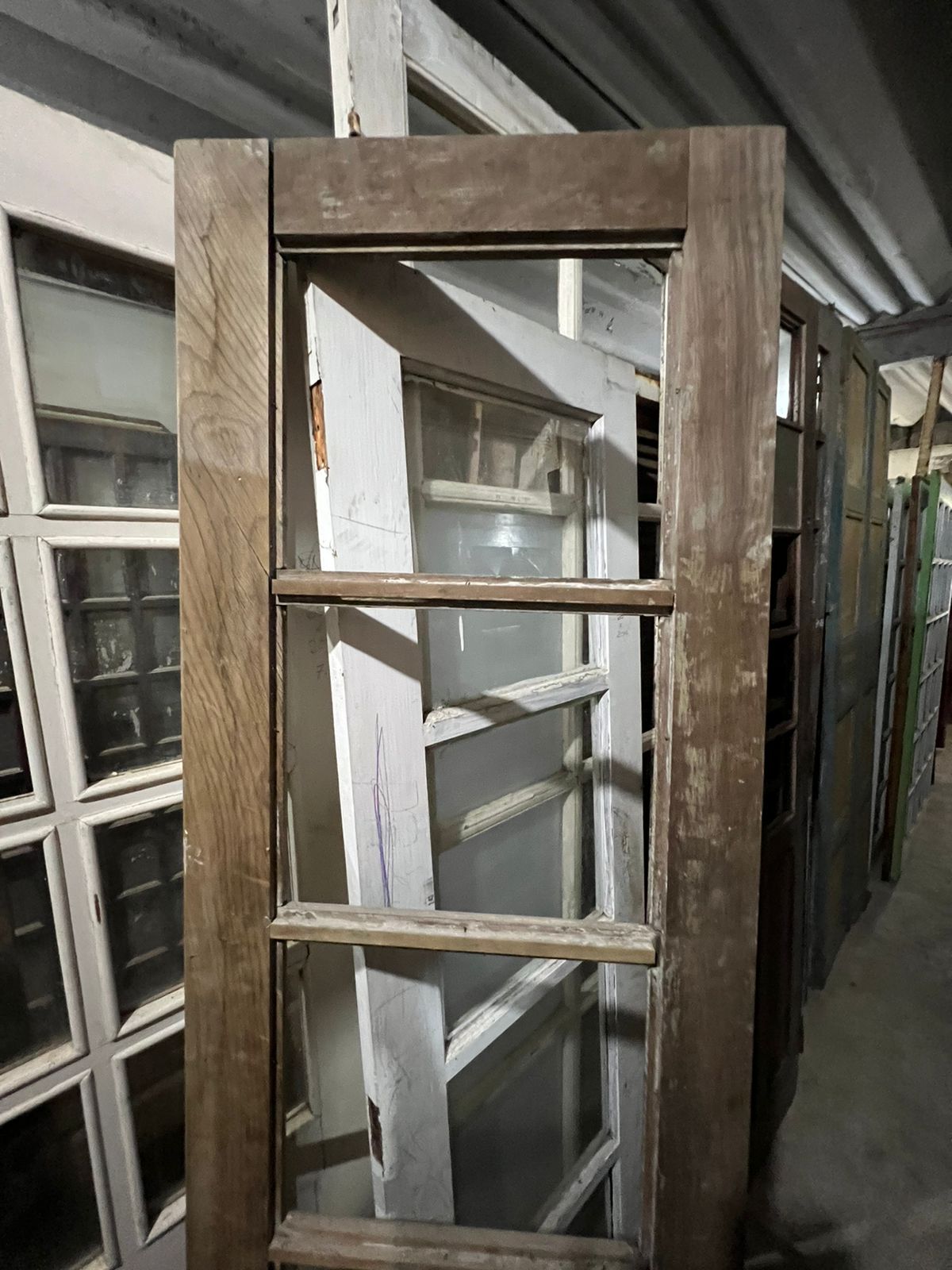 Peça de demolição, sem acabamento. Possui espaço para vidros na parte superior e almofadas na parte inferior.