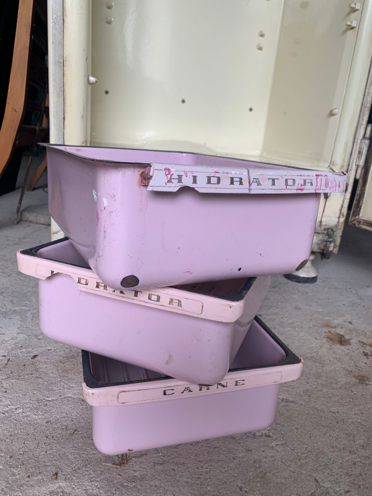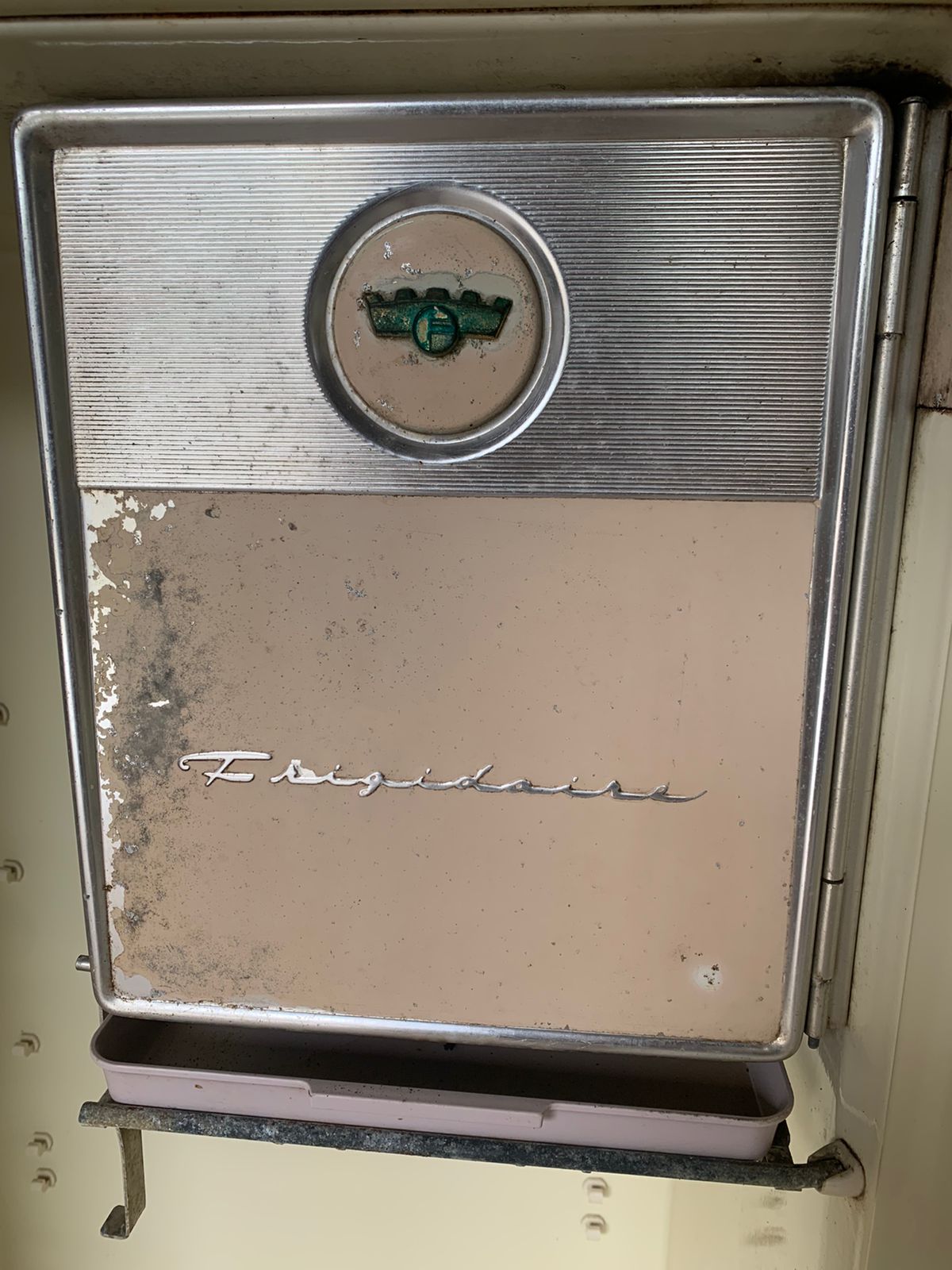 Geladeira antiga Frigidaire, produzido pela General Motors, da década de 1950. Cor branca original. Acompanha 3 gavetas, entretanto não possui as grades da prateleira.