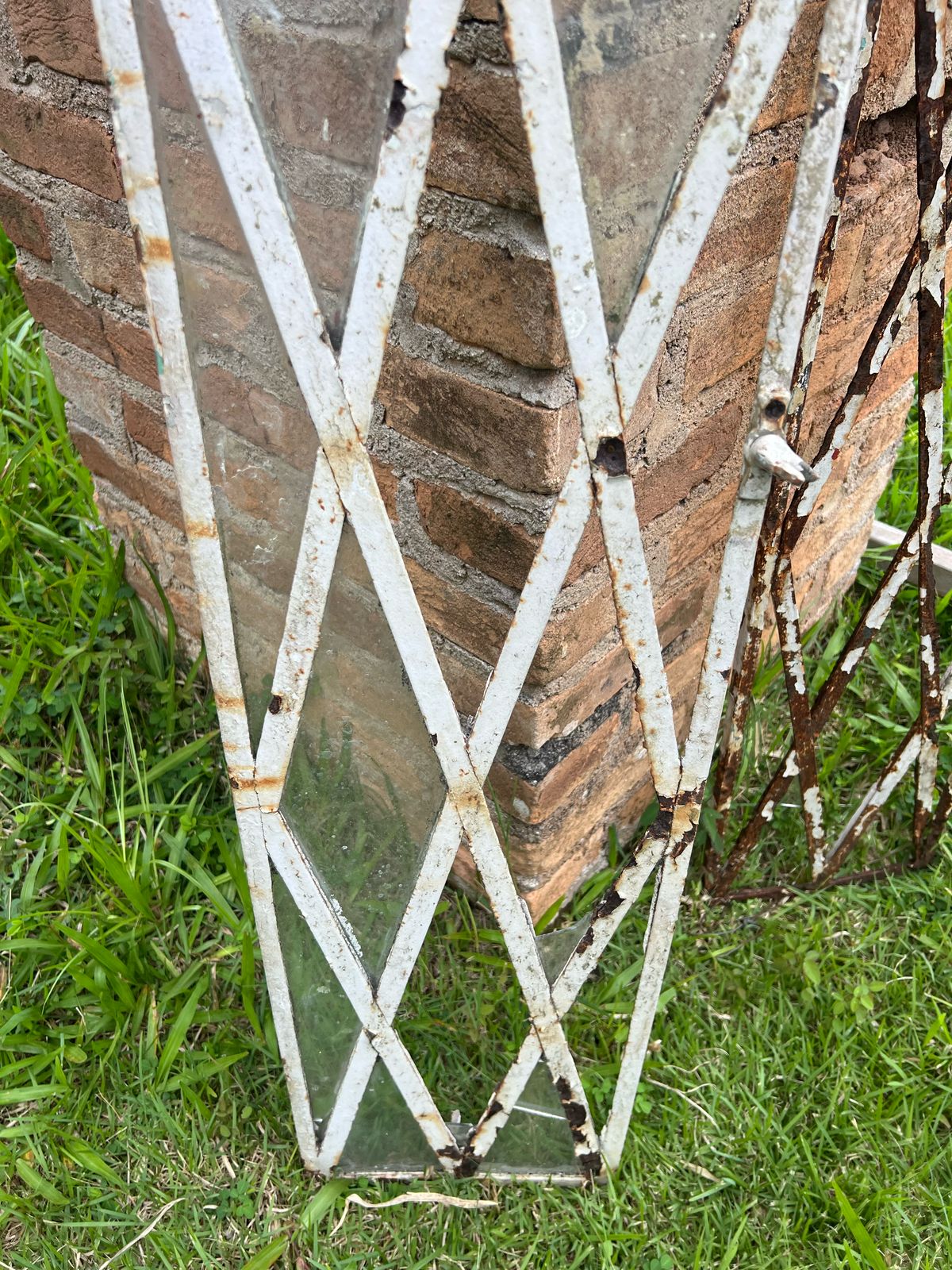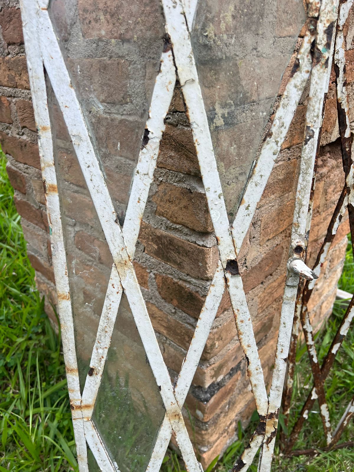 Peça de demolição, sem acabamento. Possui formas de losangos. Não possui batentes.