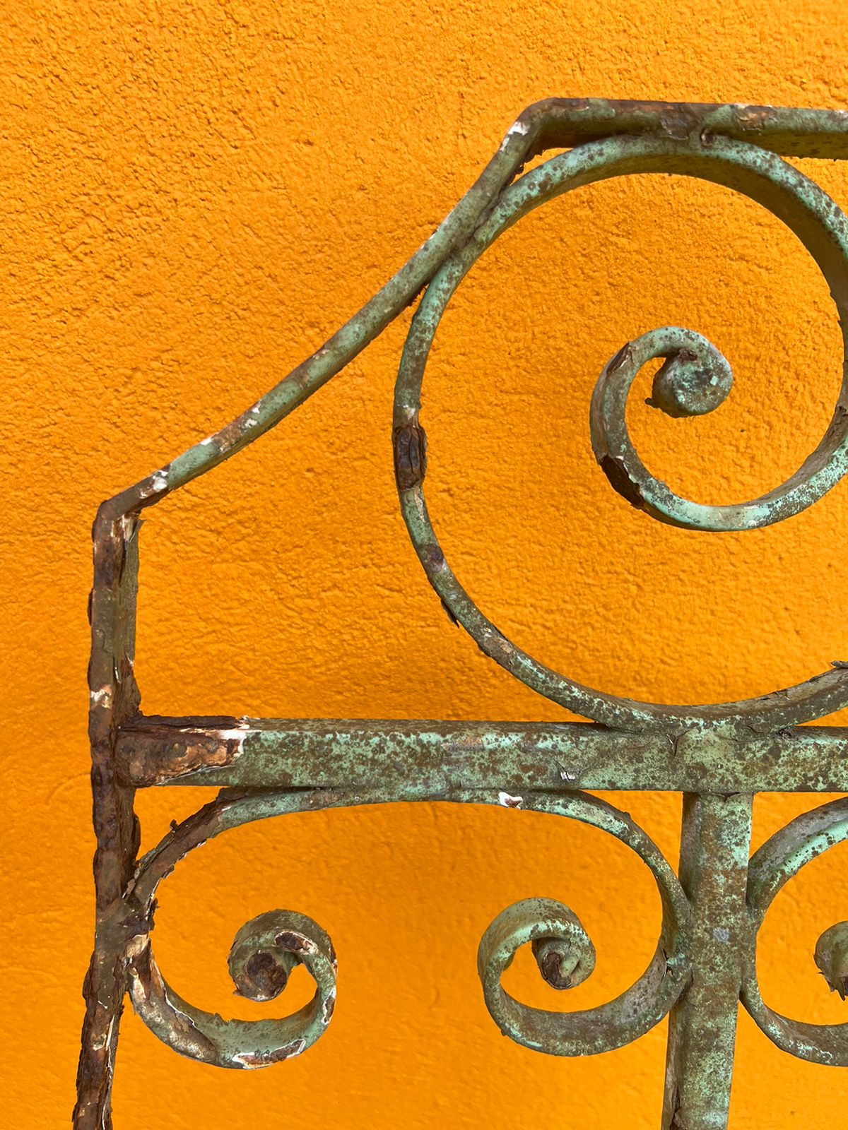 Feita de ferro fundido, sem acabamento, pintada na cor verde. Com ornamentos em rococó.