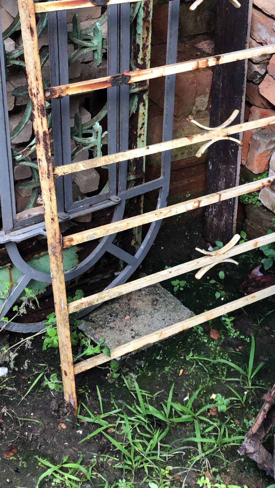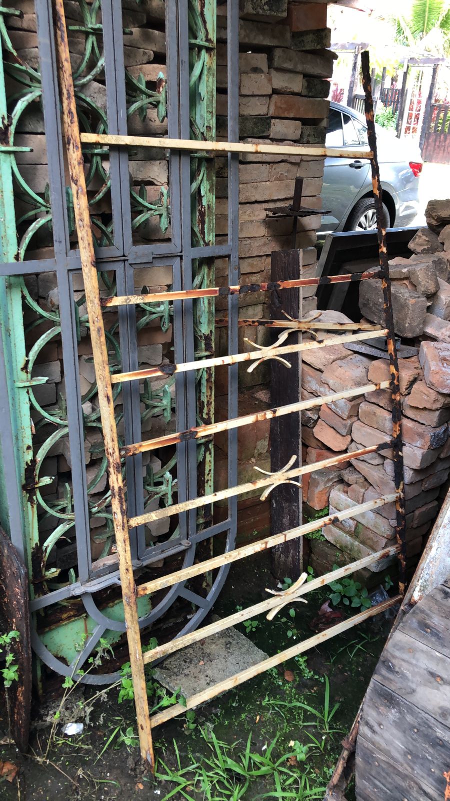 Peça de demolição, antiga e sem acabamento. Possui detalhes nas grades retas.