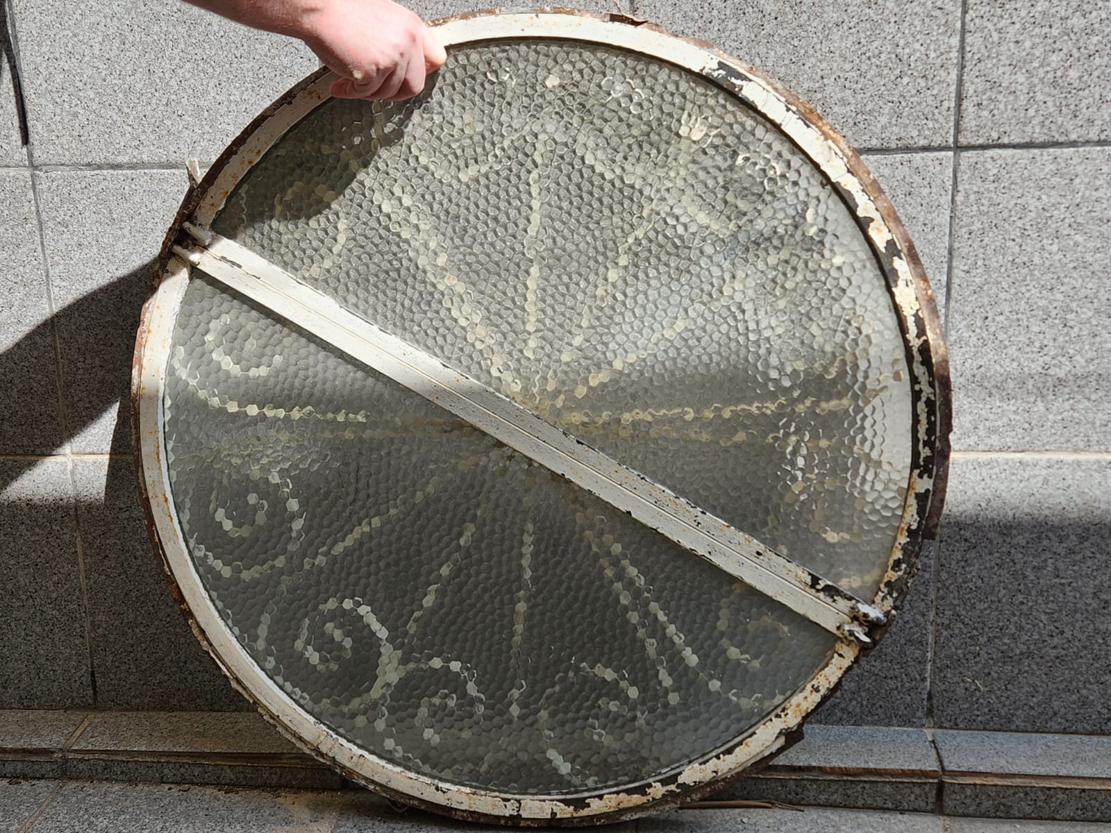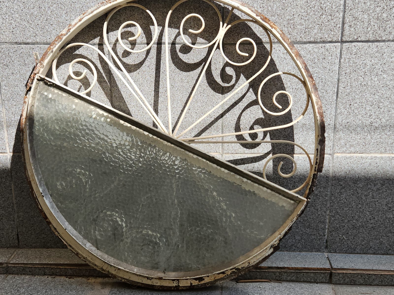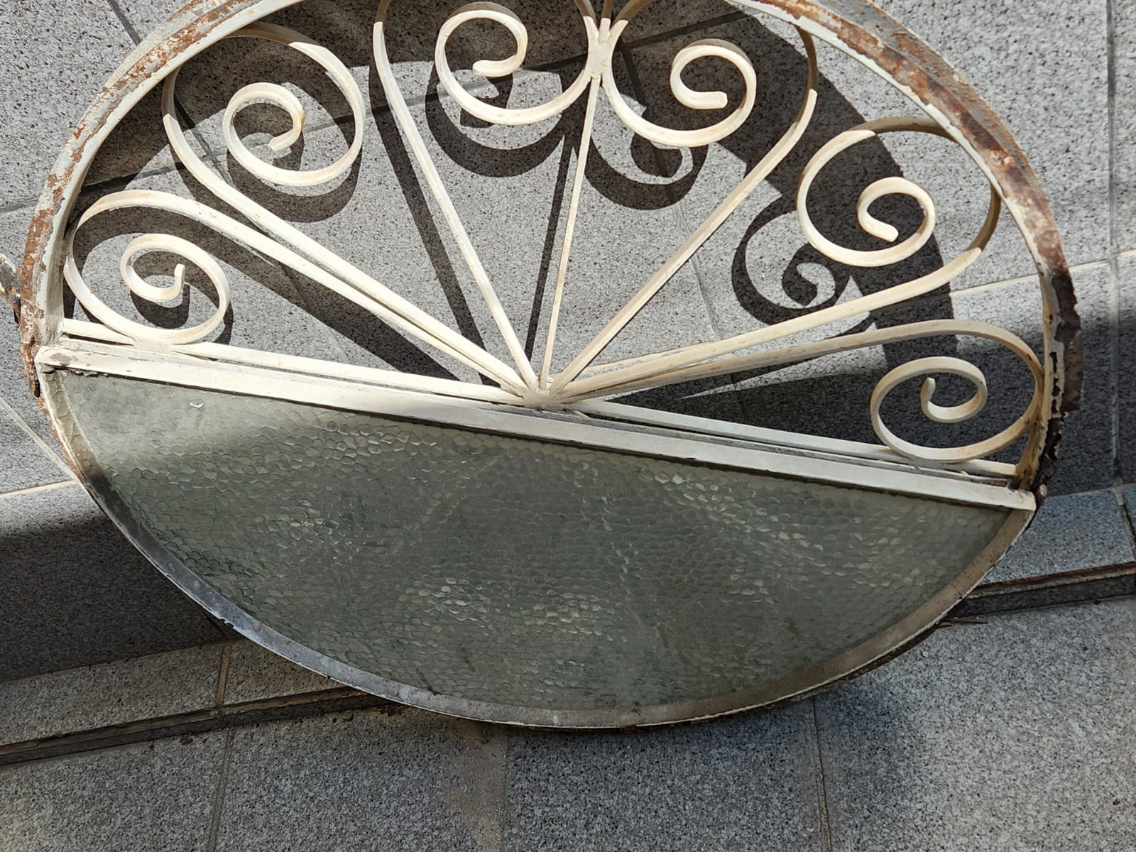 Peça antiga, de demolição, sem acabamento. Com grade e vidro incolor.