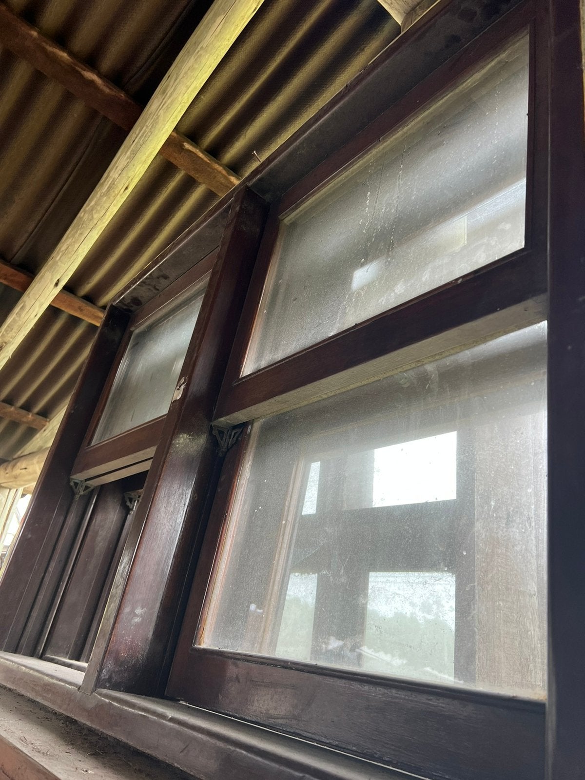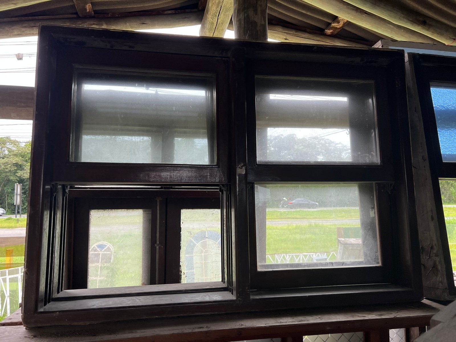 Janela de madeira guilhotina.