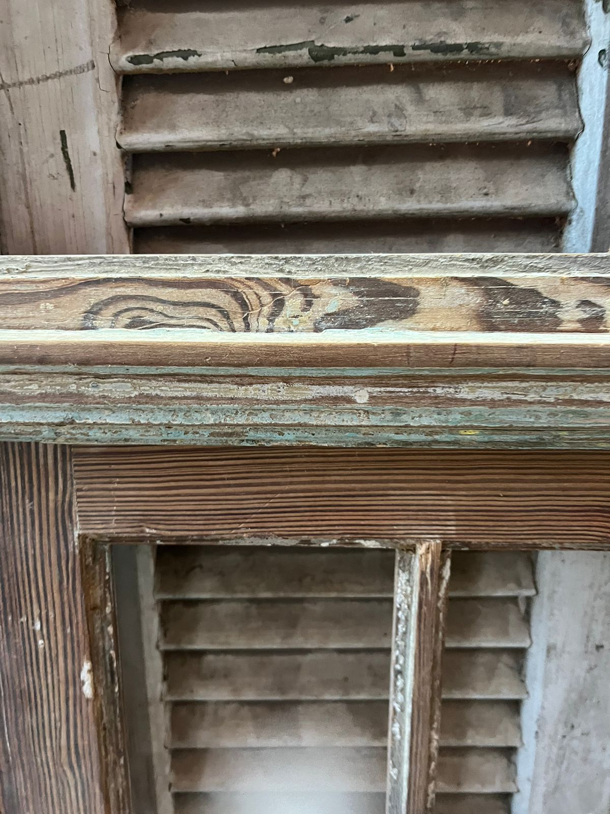 Peça de demolição, sem acabamento. Possui espaço para 24 vidros, com veneziana e bandeira superior.