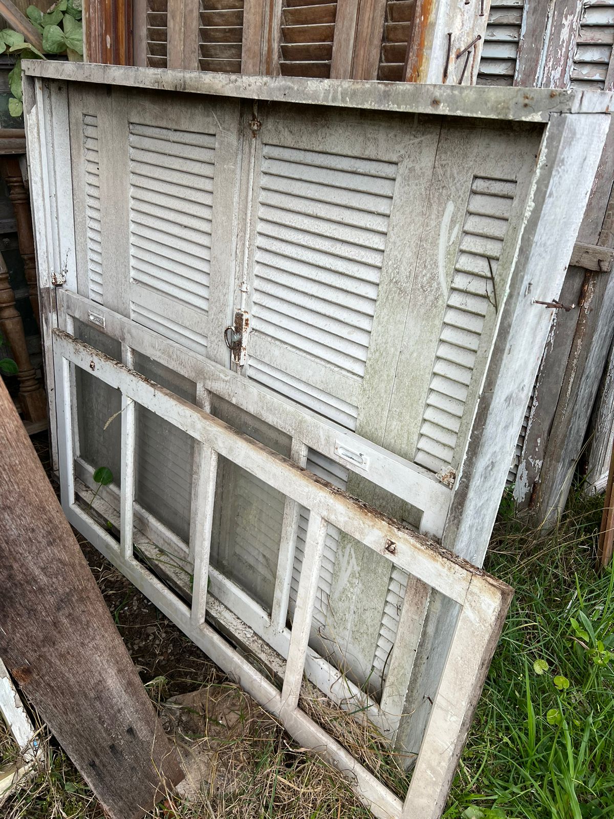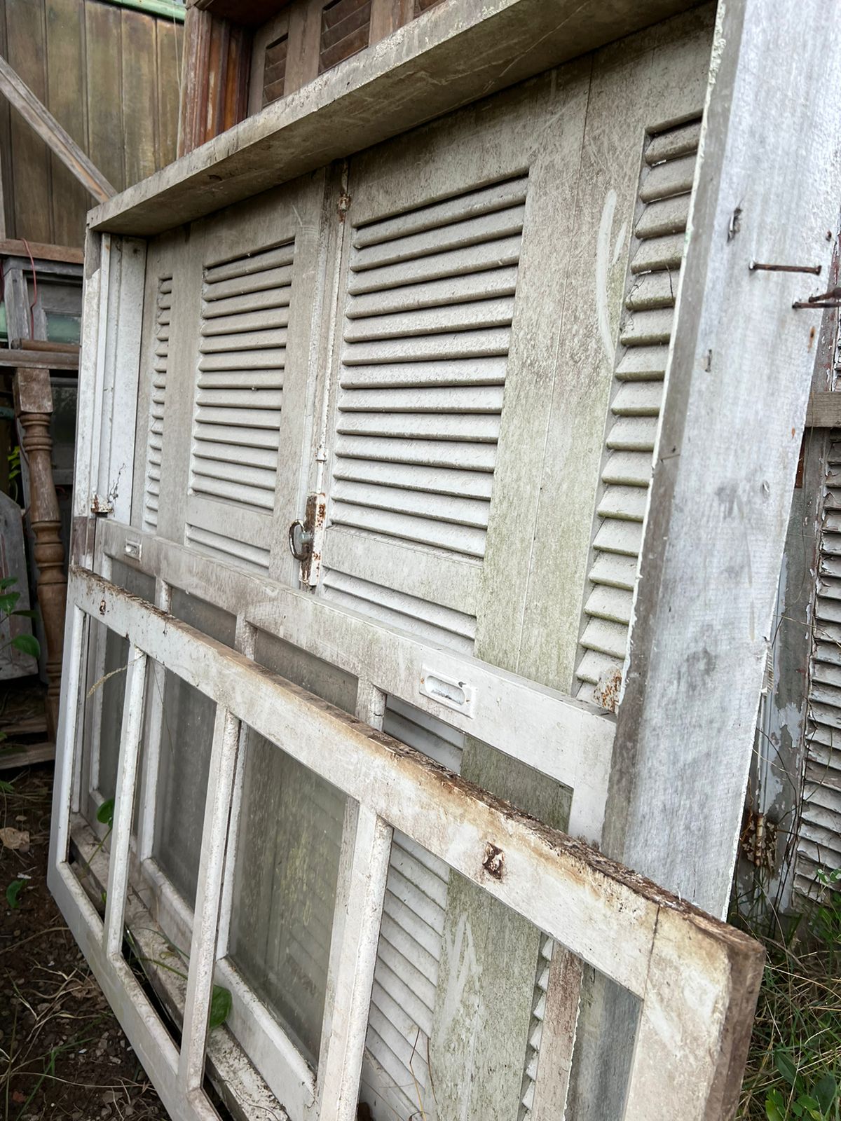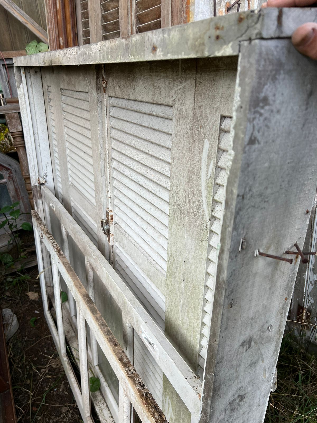 Feita de madeira maciça, sem acabamento. Abertura em guilhotina, possui venezianas.