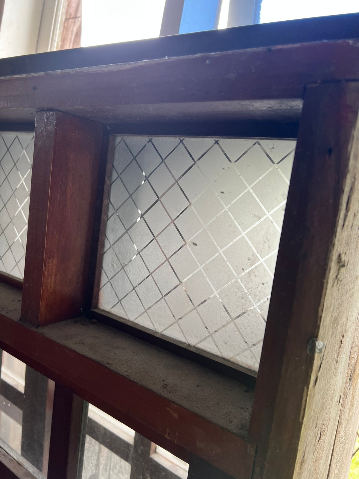 Janela grande de correr com vidros jateados.