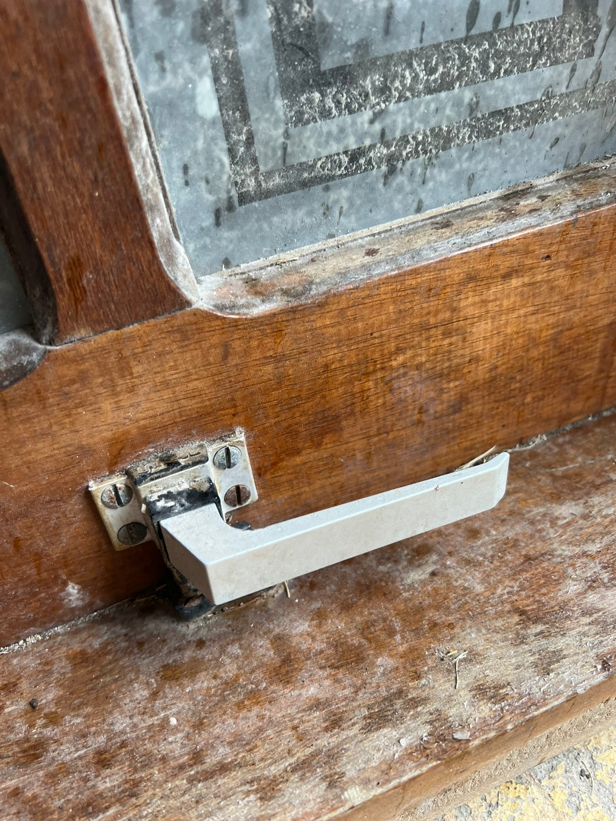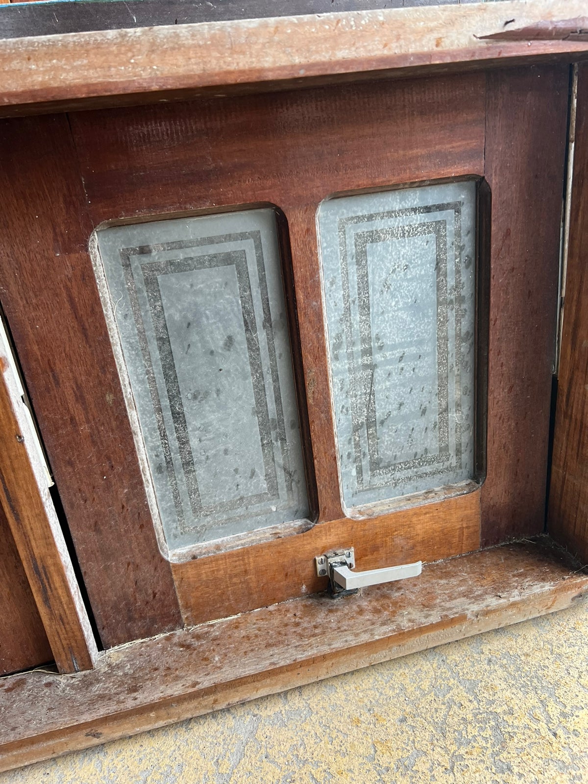 Janela horizontal basculante com vidro jateado.