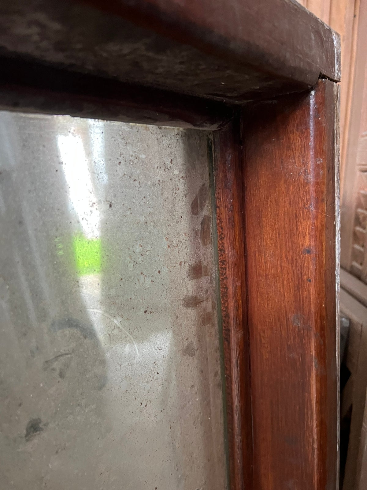 Feito de madeira maciça, sem acabamento. Possui vidro incolor.
