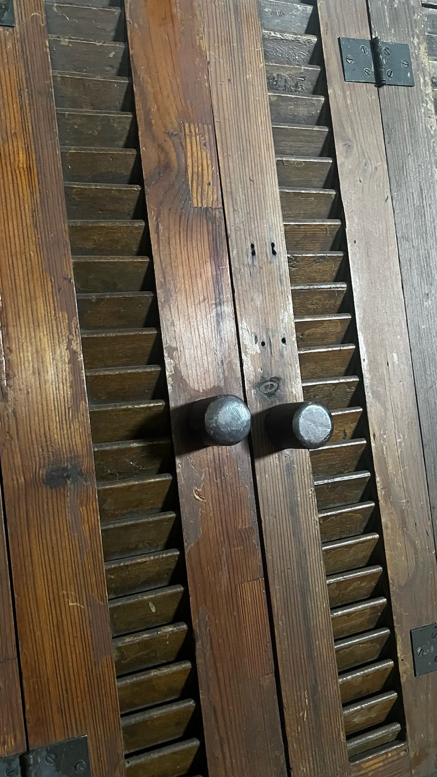 Peça antiga, sem acabamento. Possui 4 folhas, com puxadores e ferragens. Acompanha de batentes.