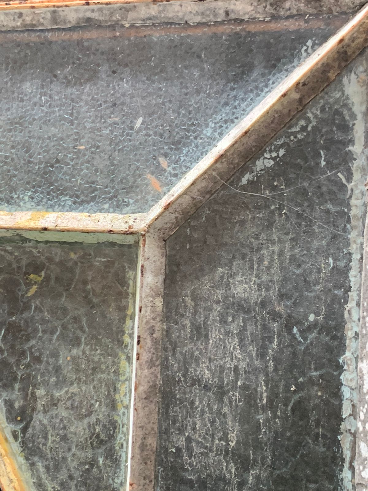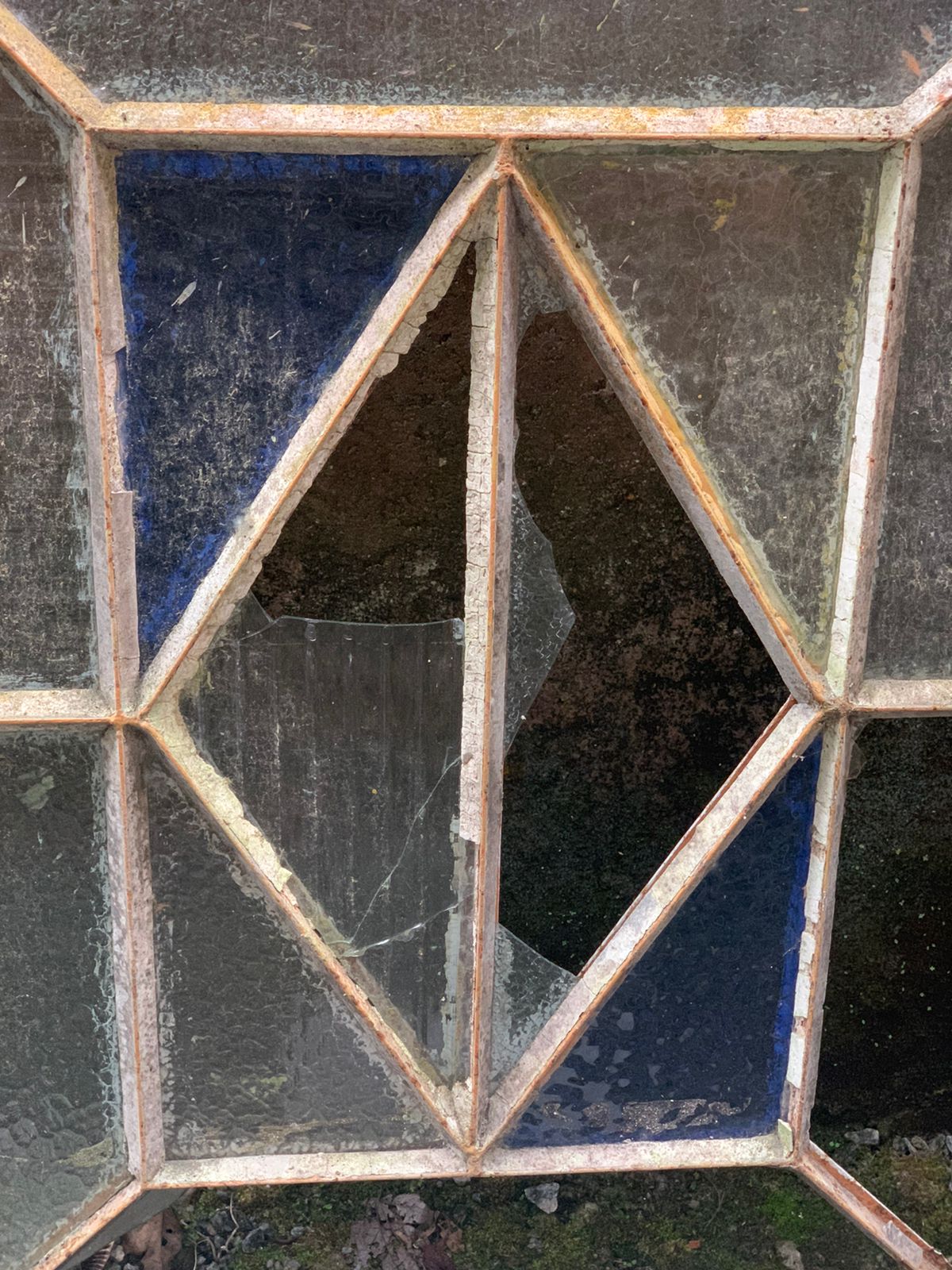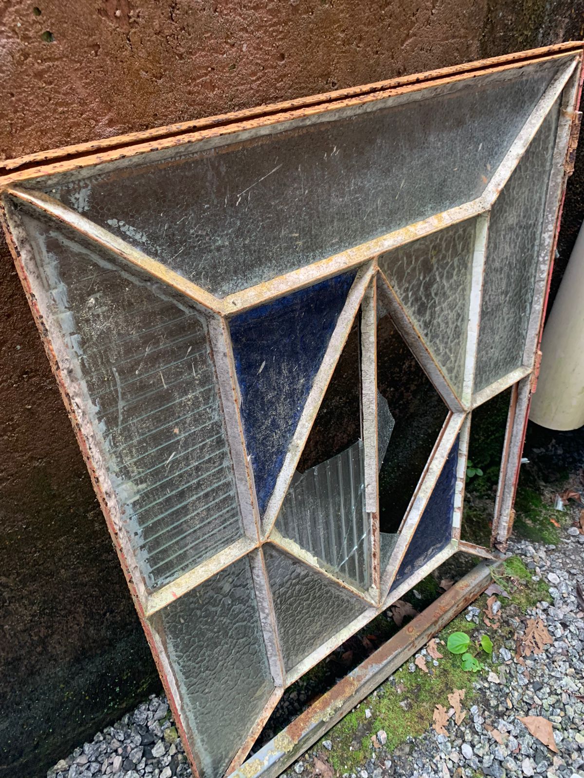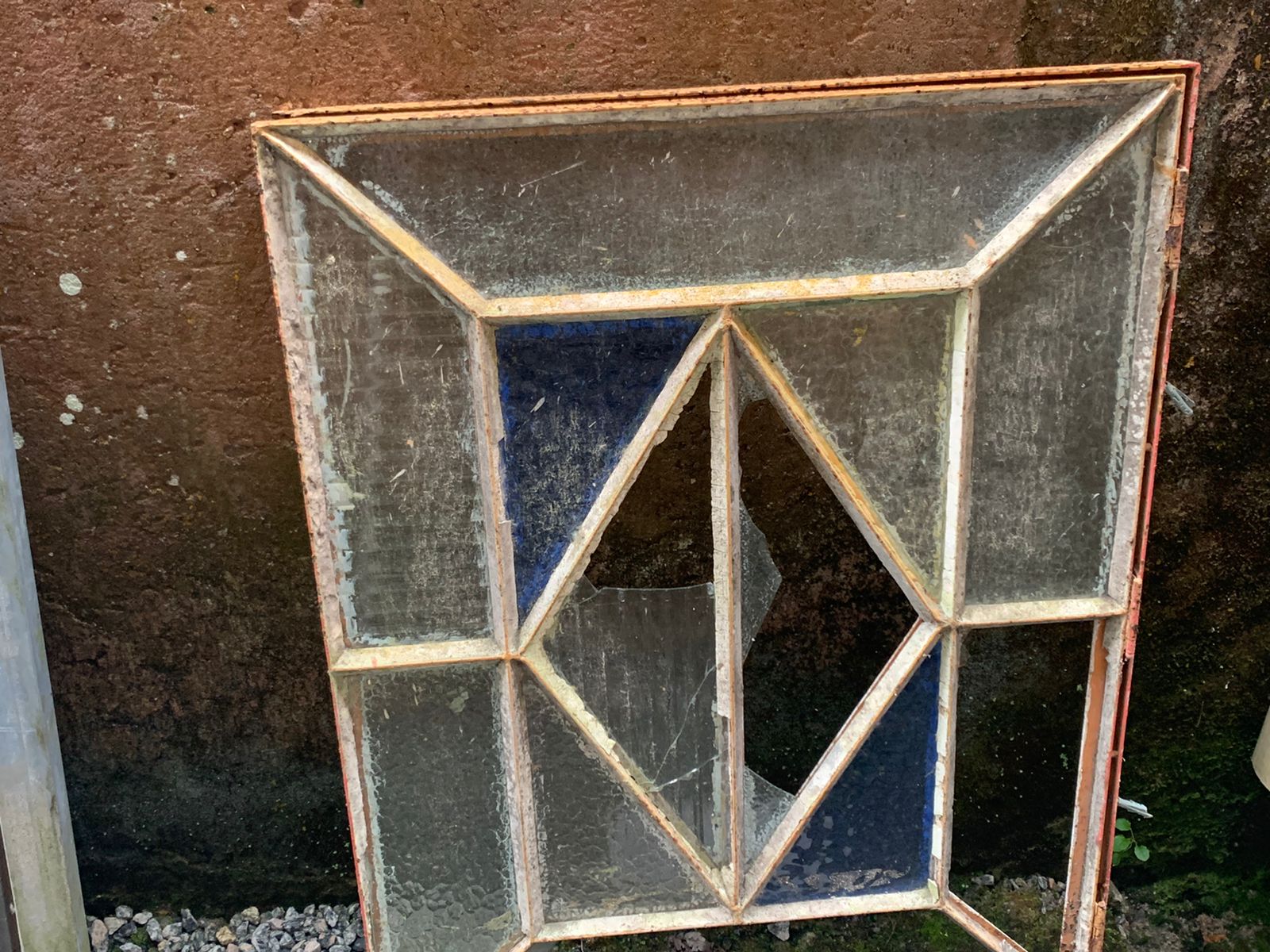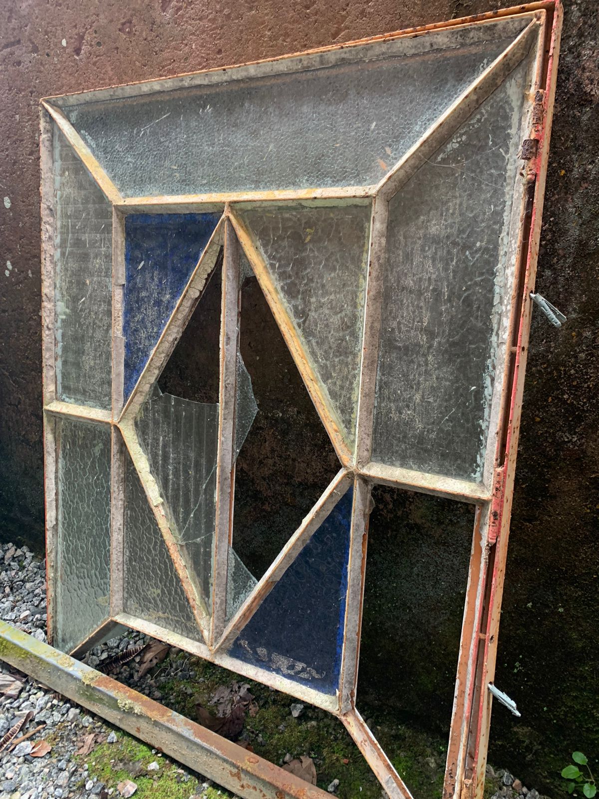 Janelinha vitral de ferro, que precisa de restauração.