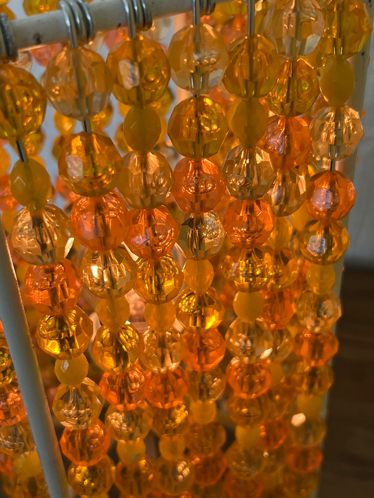 Luminária de mesa laranja e amarela.