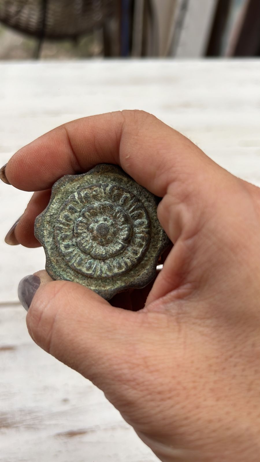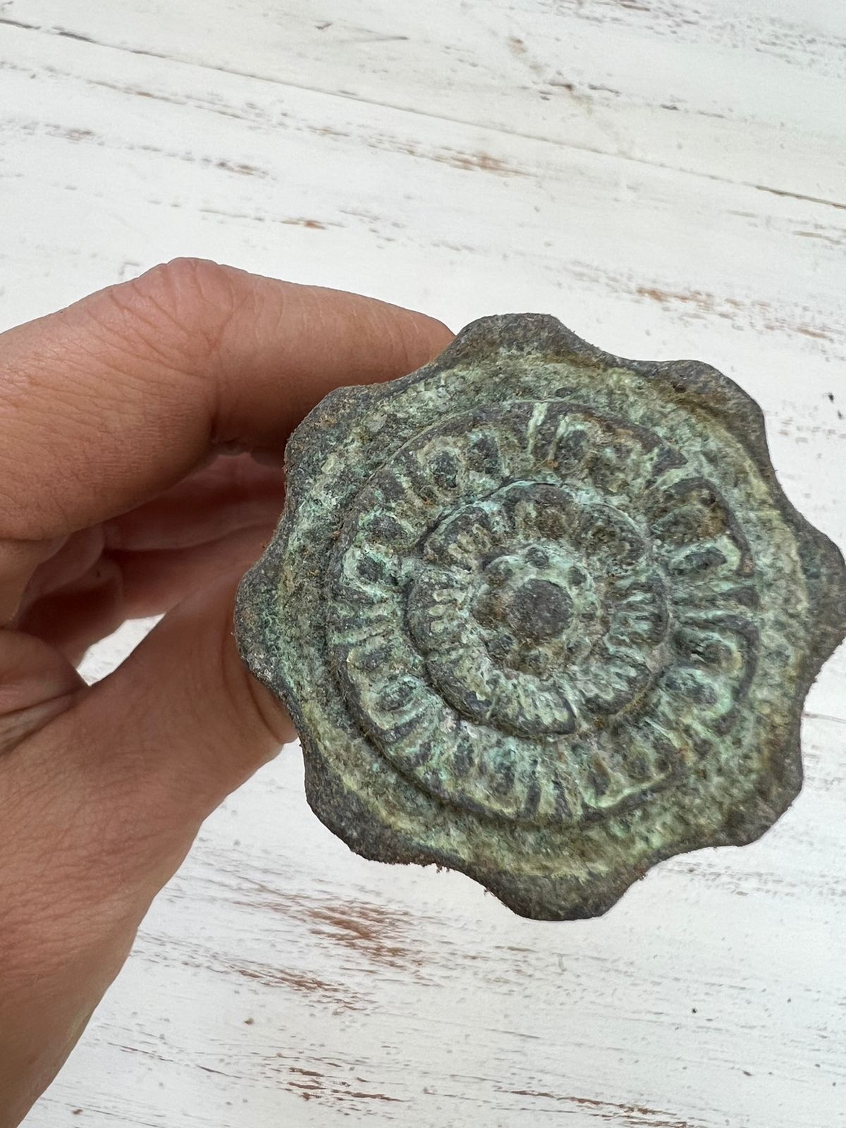Retirado de uma porta antiga, podendo ser reutilizadas. Possui detalhes de flor.