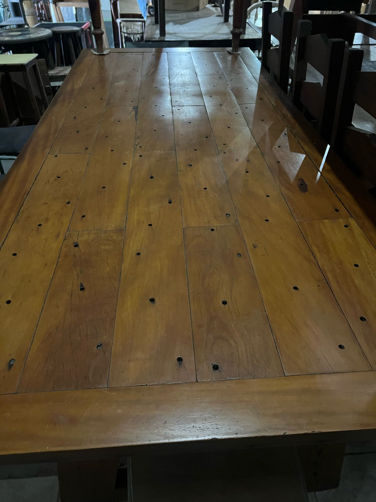 Peça feita de madeira nobre, em bom estado. Possui alguns furos antigos no tampo.