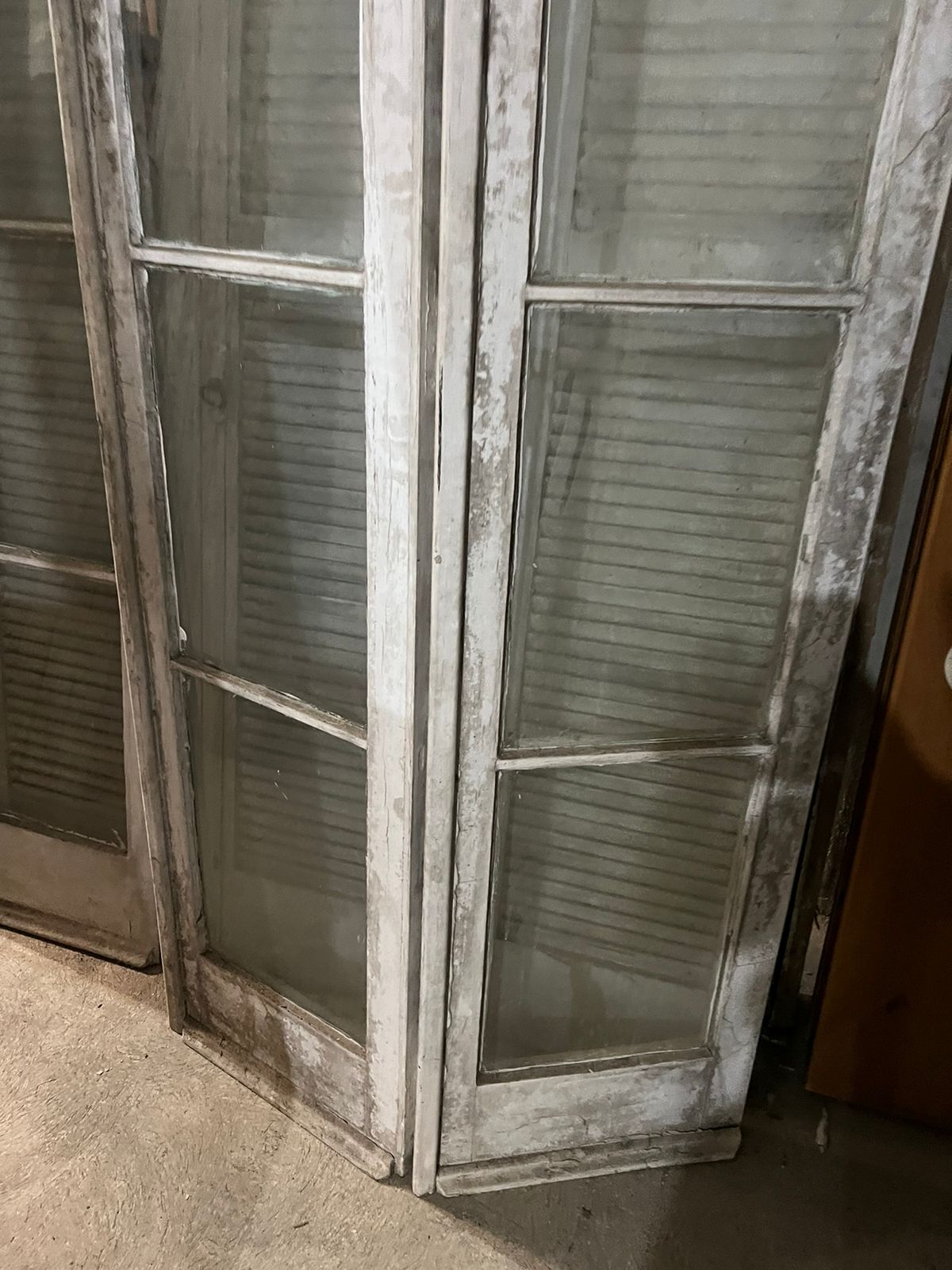 Possui 4 folhas sanfonadas com vidros incolor e folhas de veneziana.