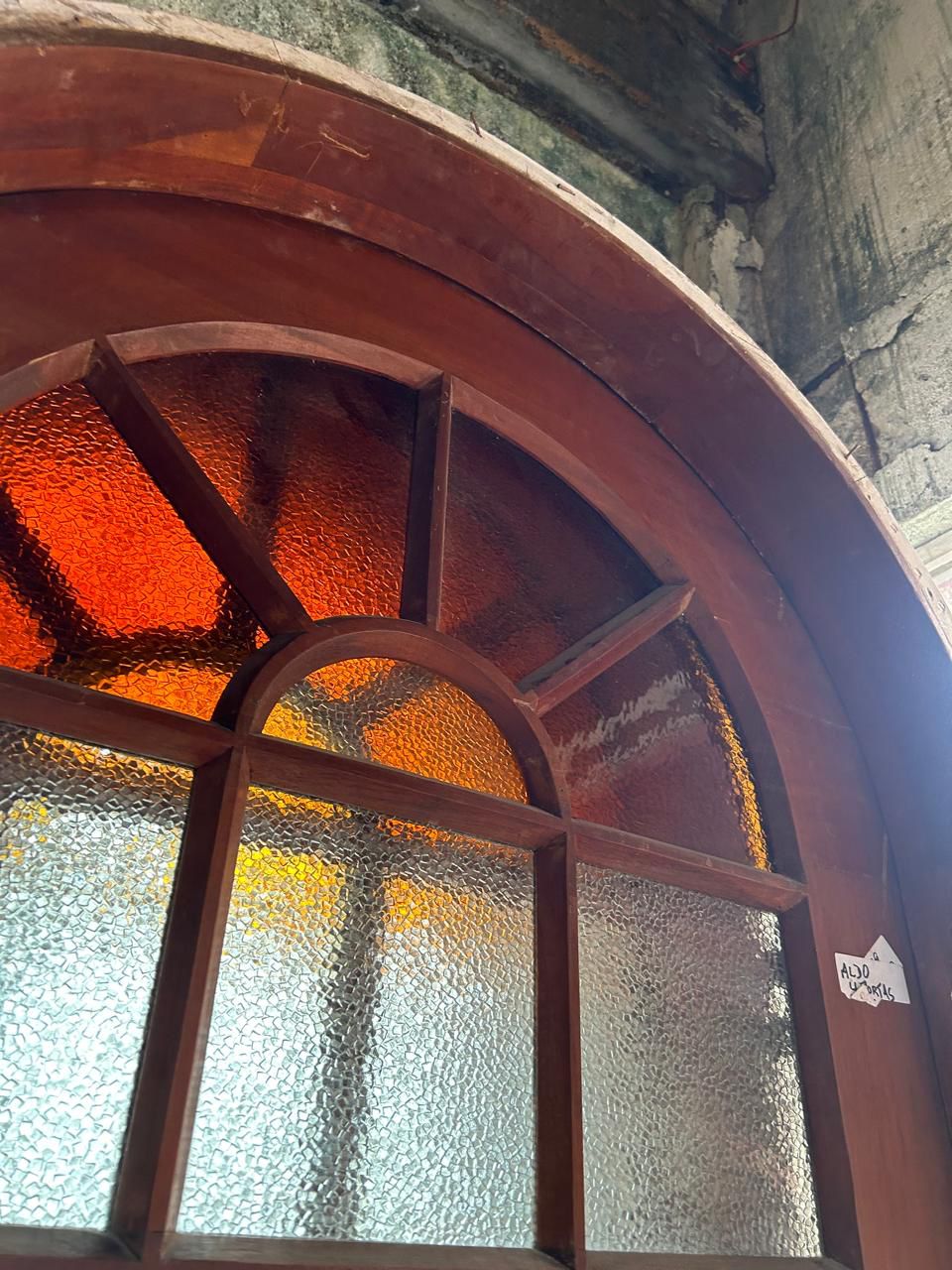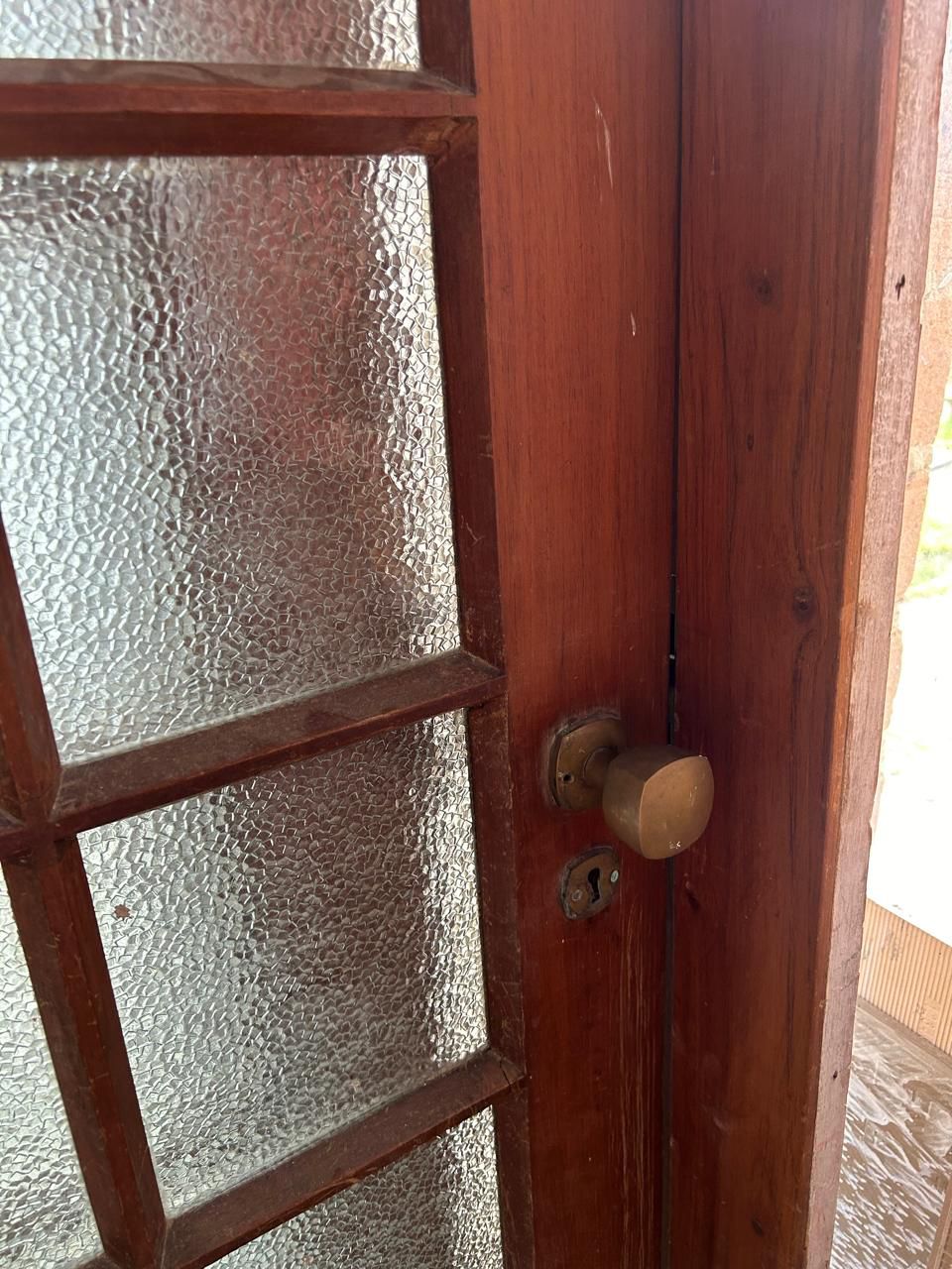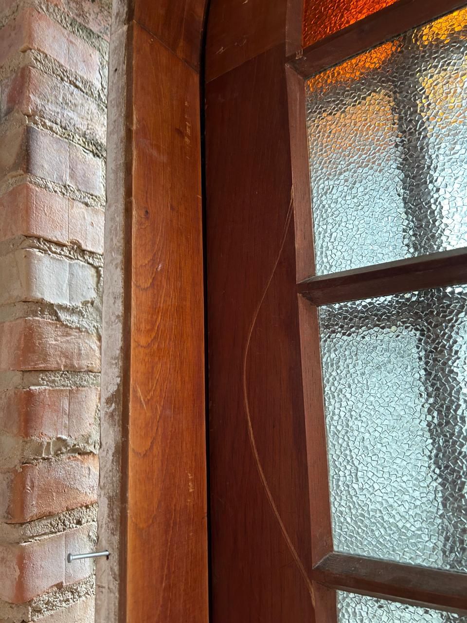 Porta com arco pleno e vidros martelados.