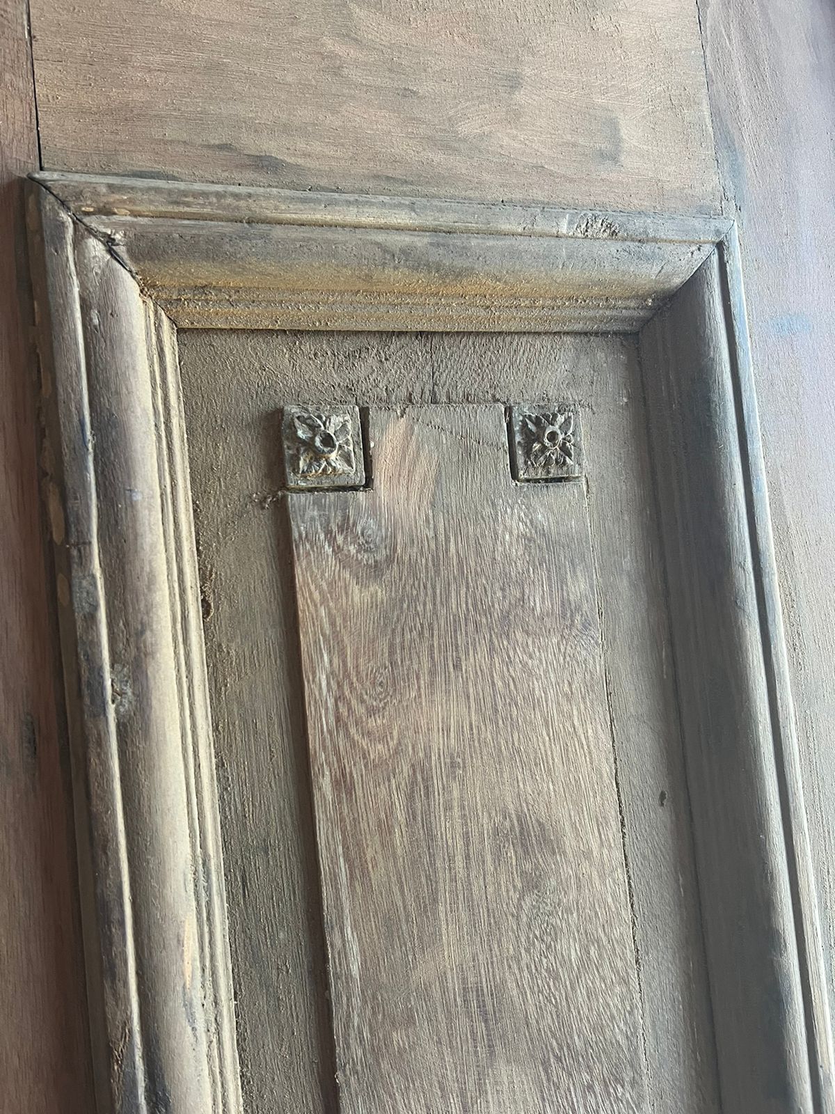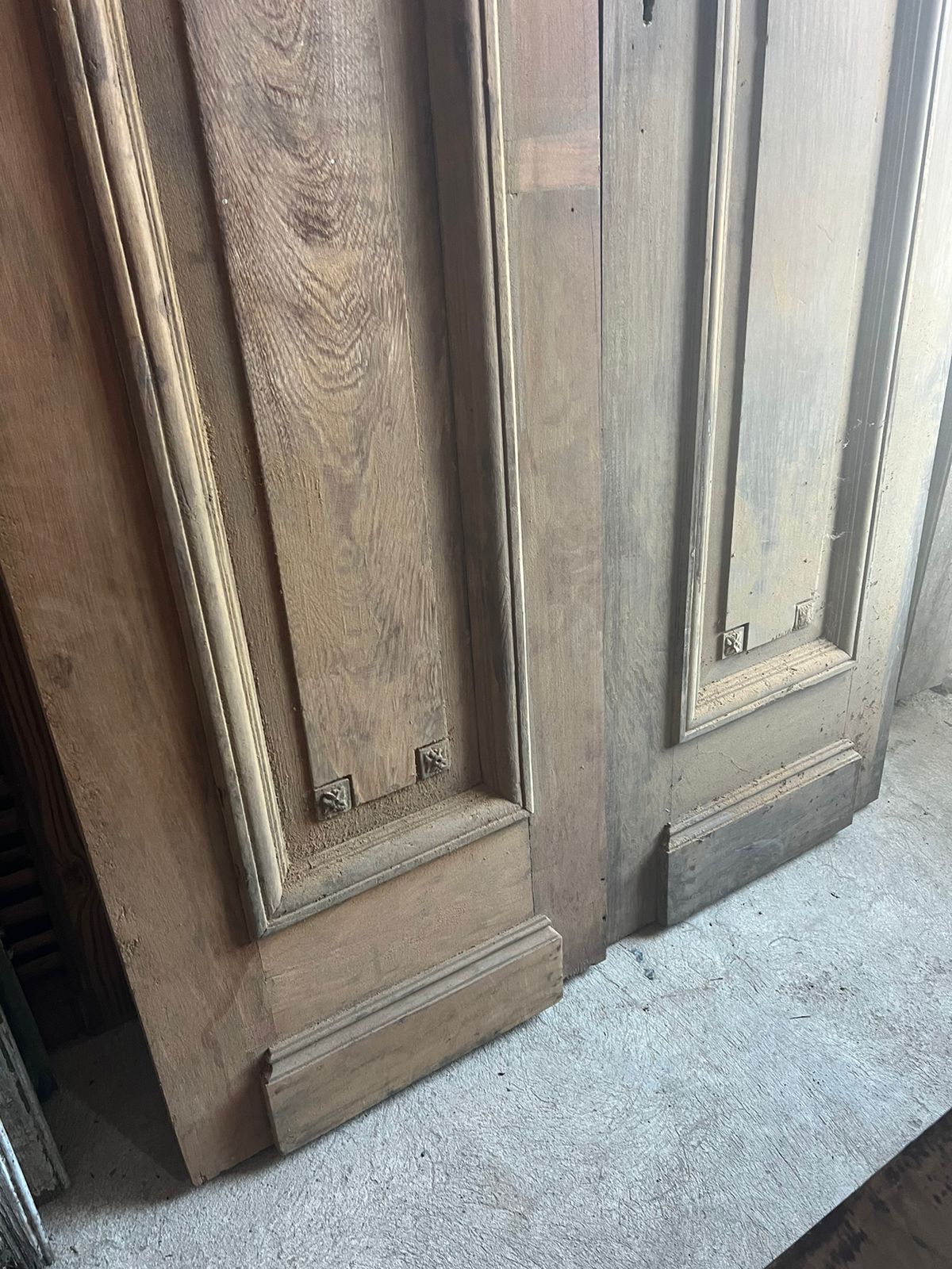 Peça de demolição, sem acabamento que pode ser restaurada. Possui almofadas e molduras sobrepostas.