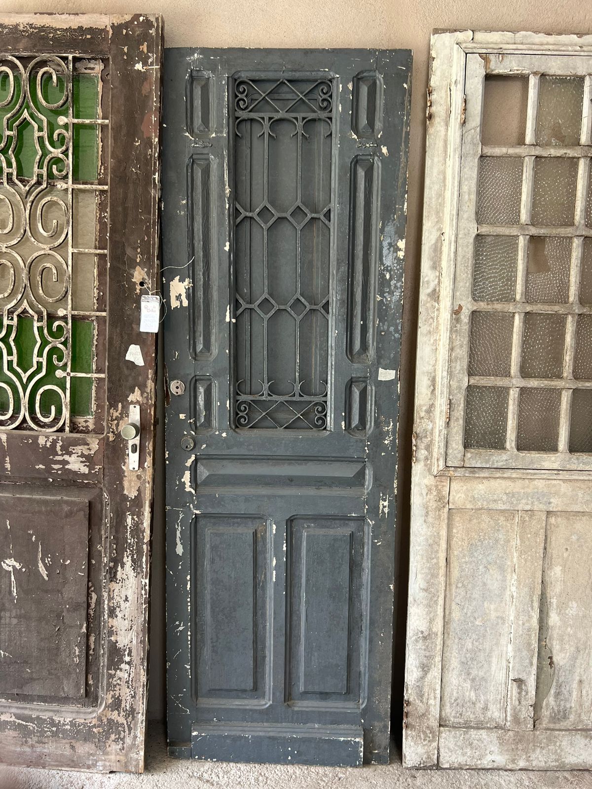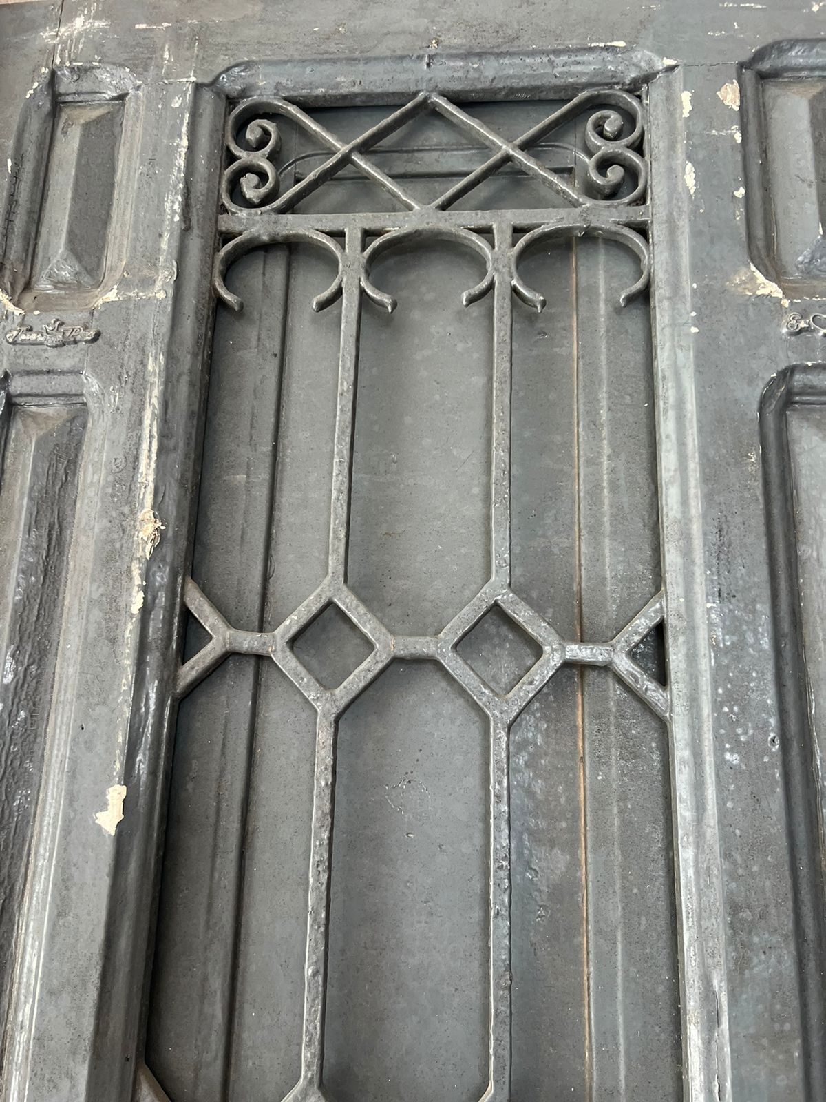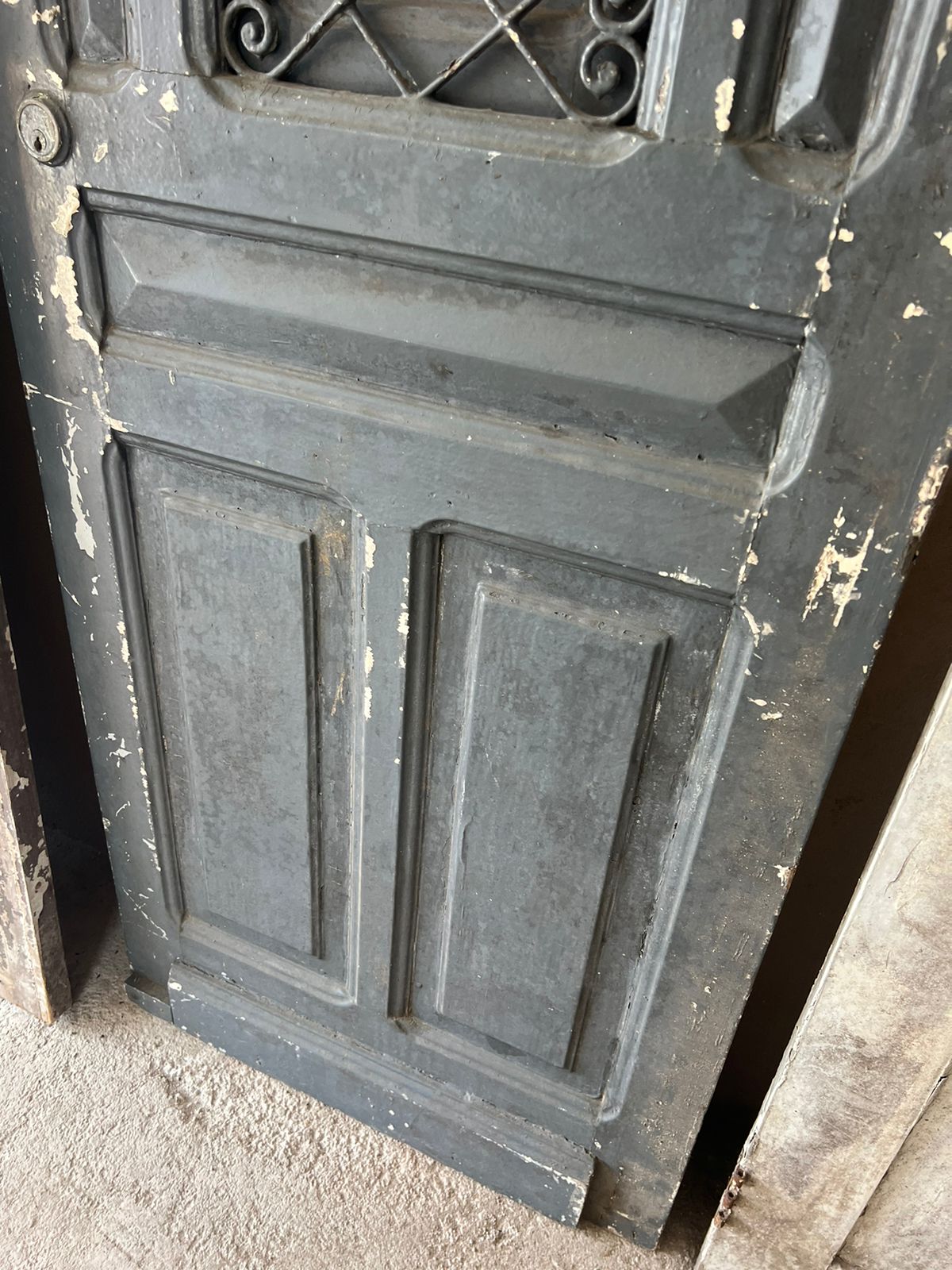 Peça de demolição, antiga, sem acabamento. Possui almofadas e postigo cego.