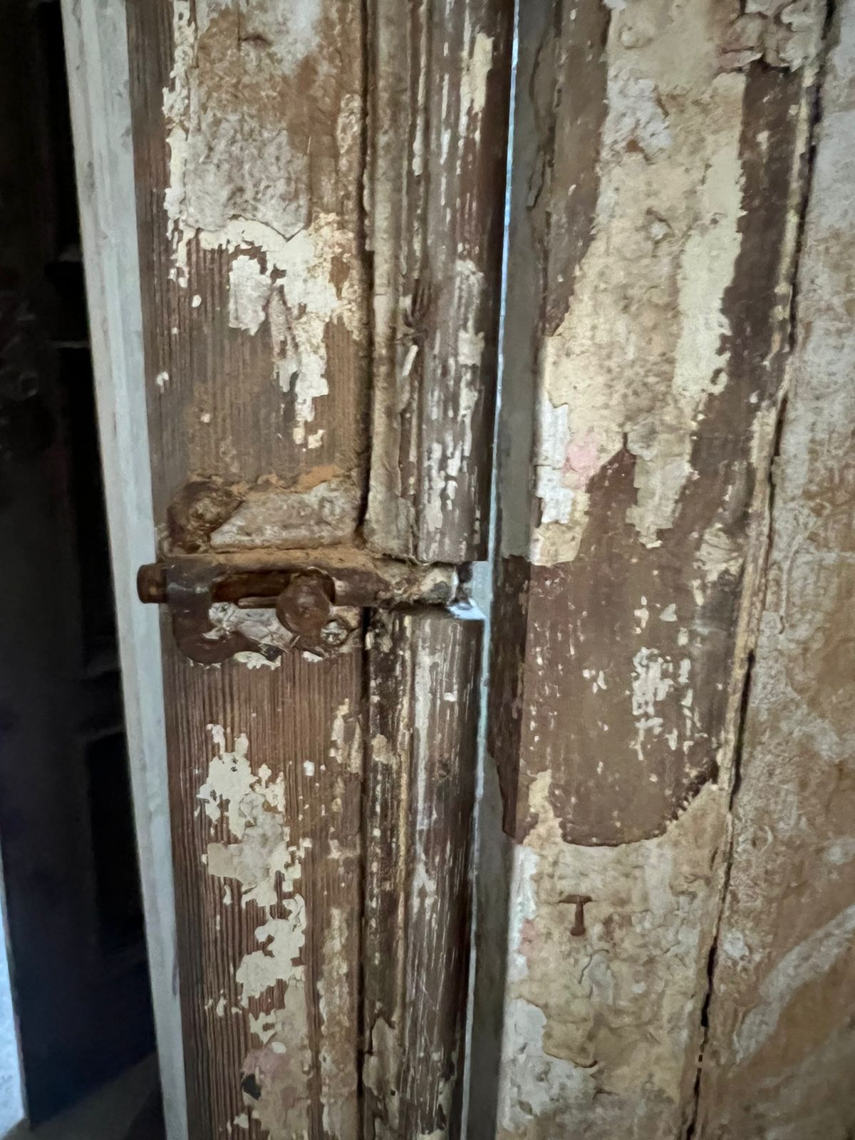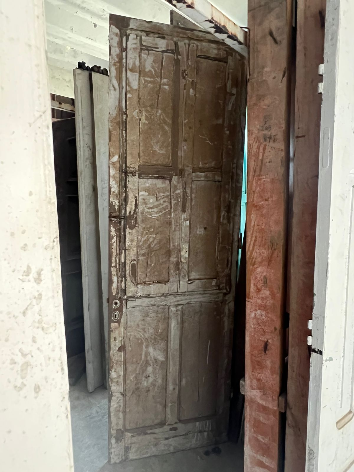 Peça antiga, de demolição, sem acabamento. Possui postigo cego com espaço para vidros.