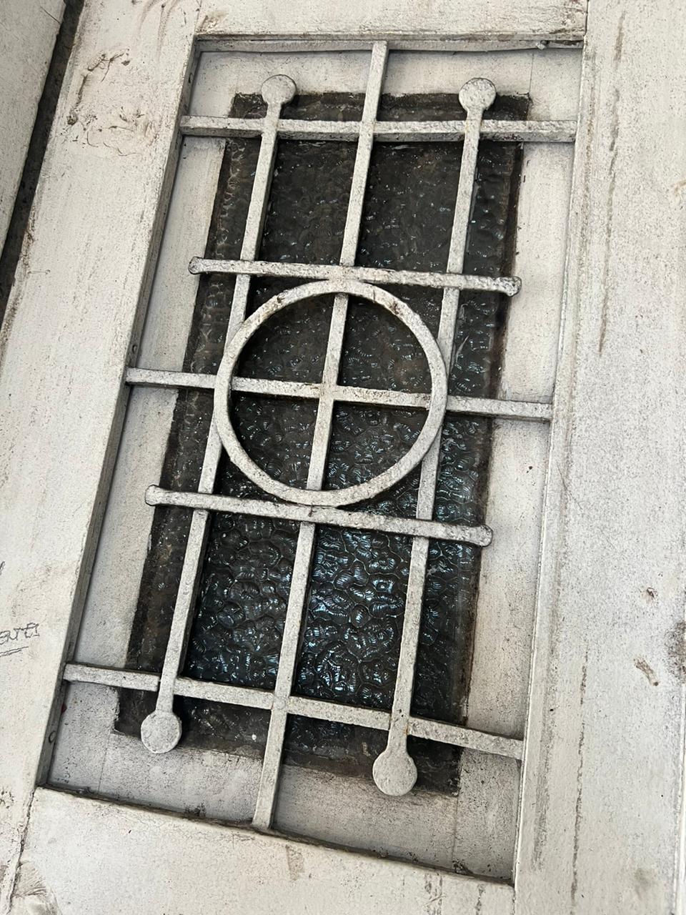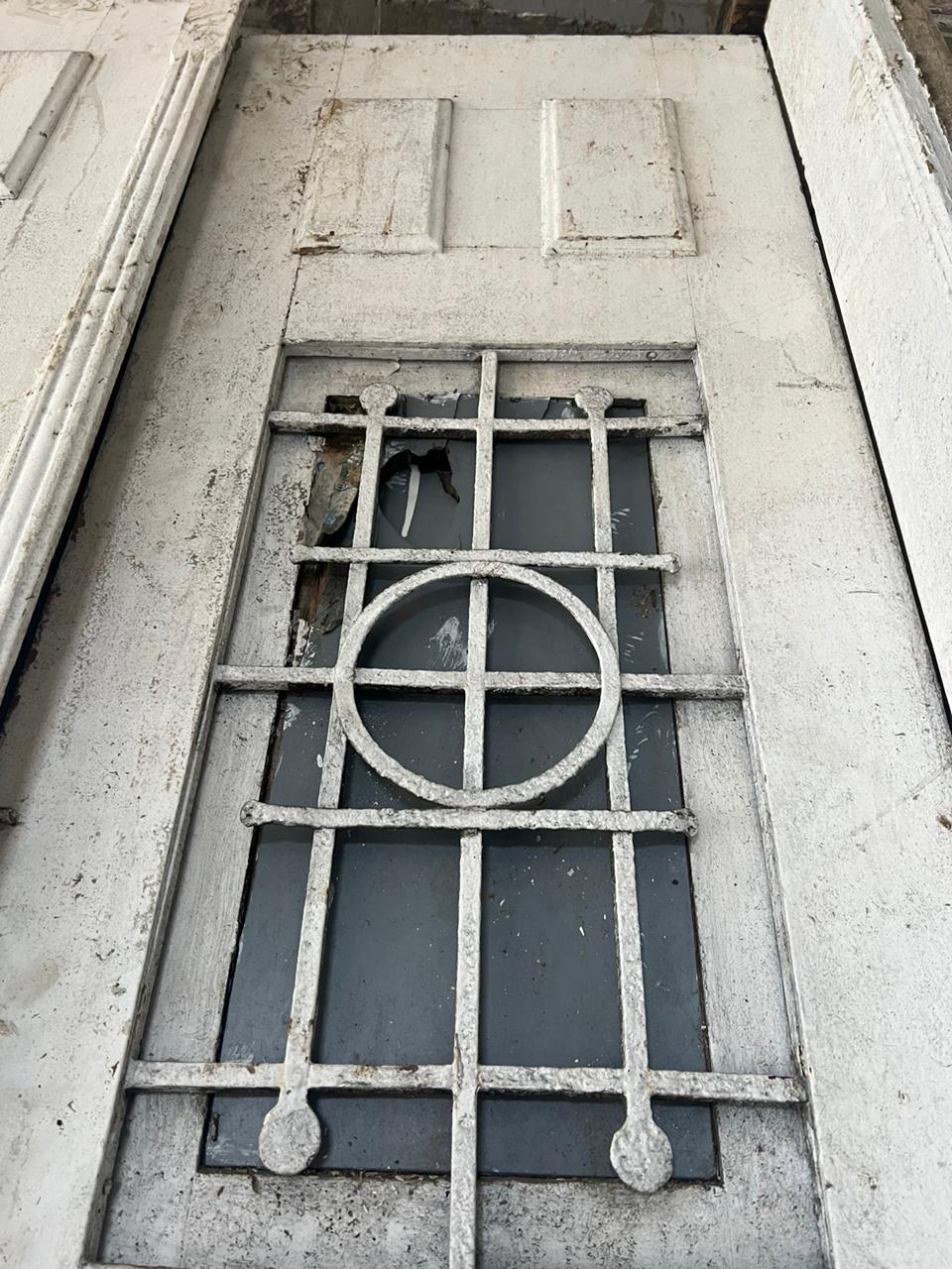 Porta dupla alta com grade.