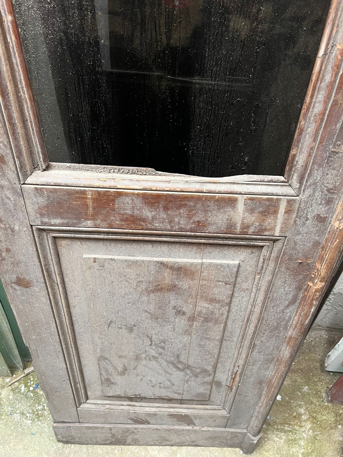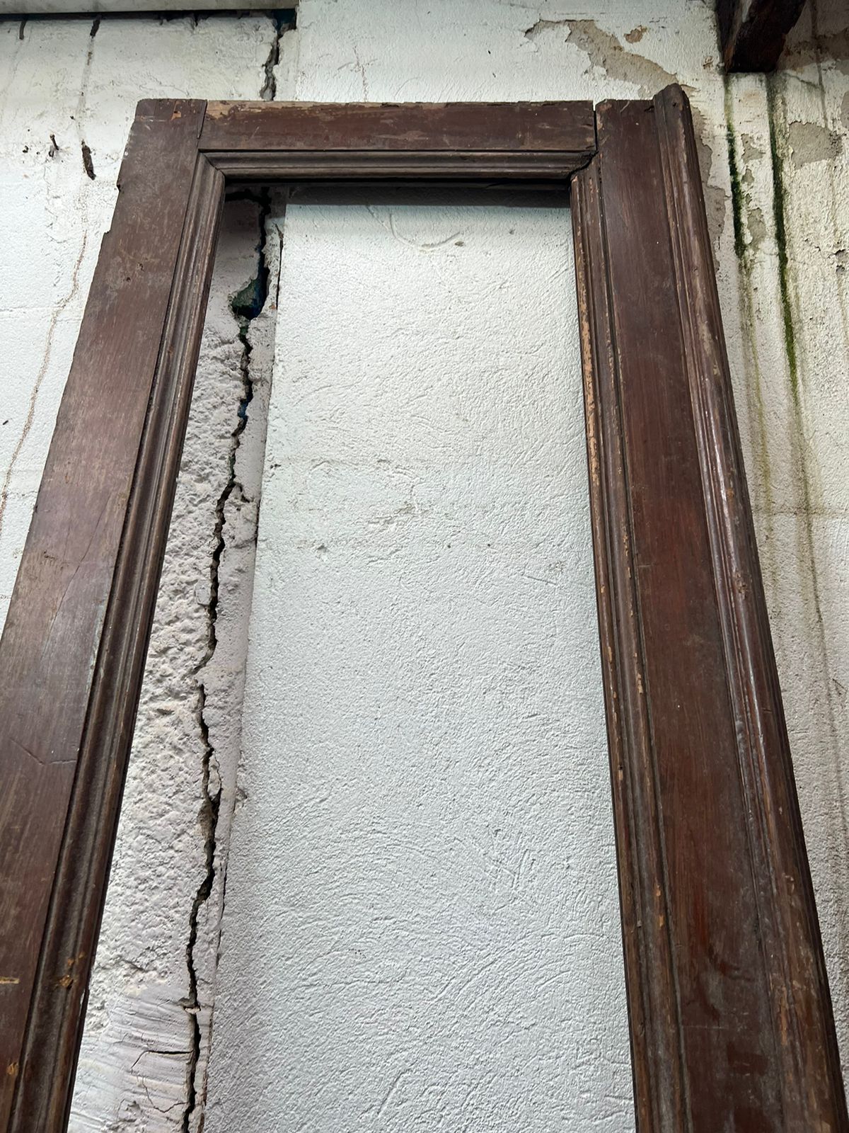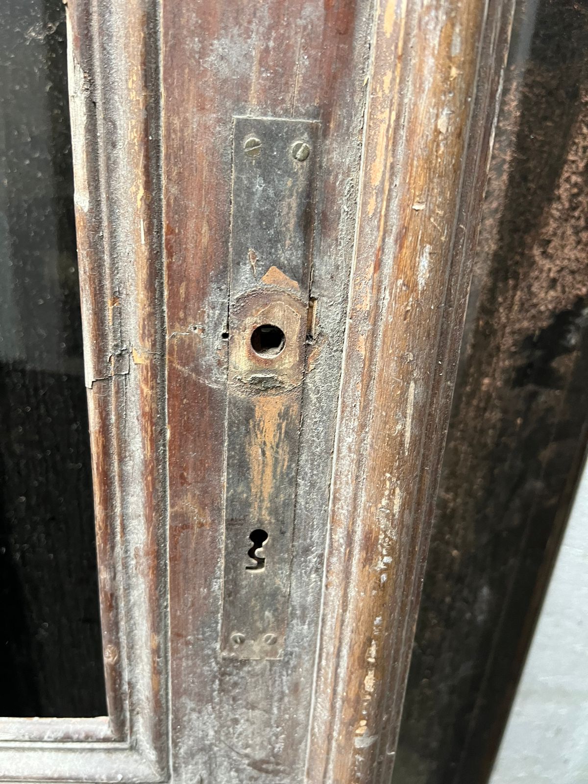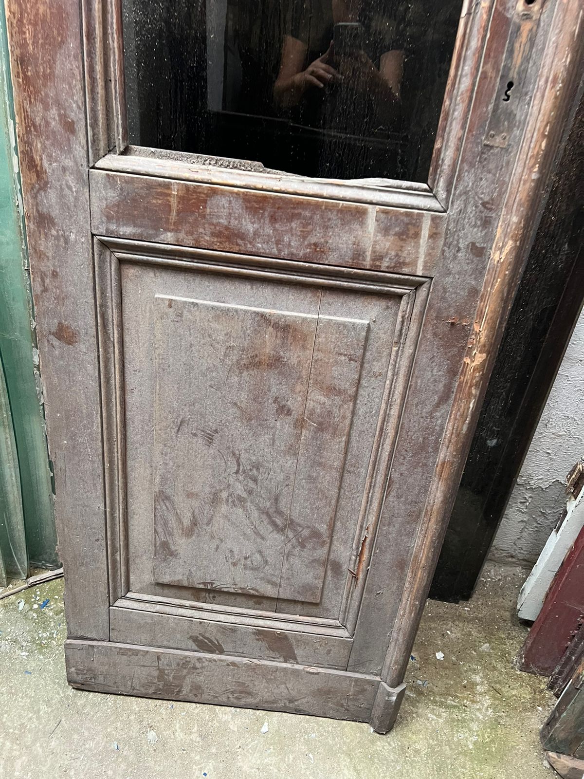 Peça antiga de demolição, sem acabamento. Possui almofada na parte inferior e espaço para vidro.