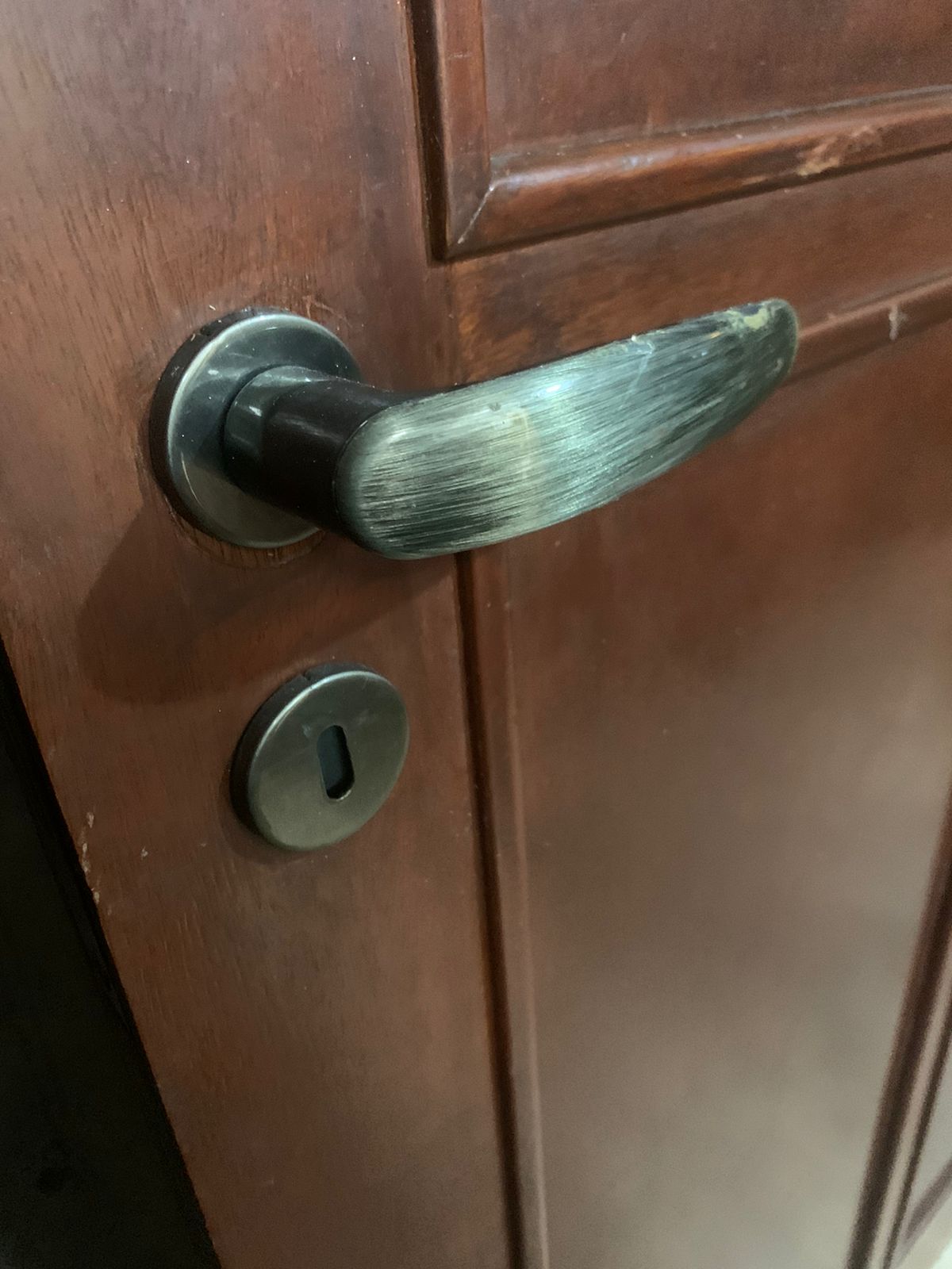 Porta de madeira maciça.