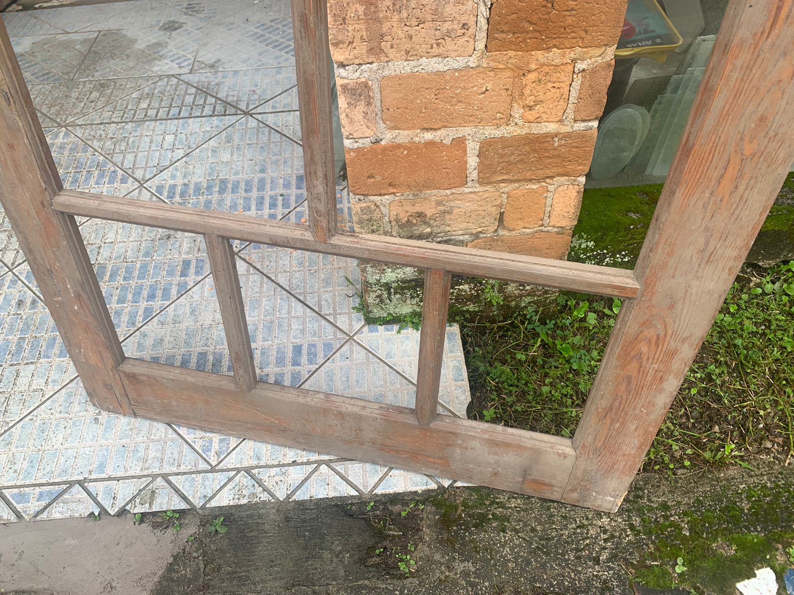 Material de demolição, podendo ser usada como porta, painel ou janela. Adaptando ela ao ambiente com muita criatividade.