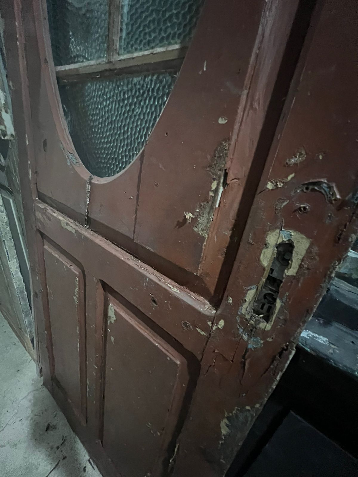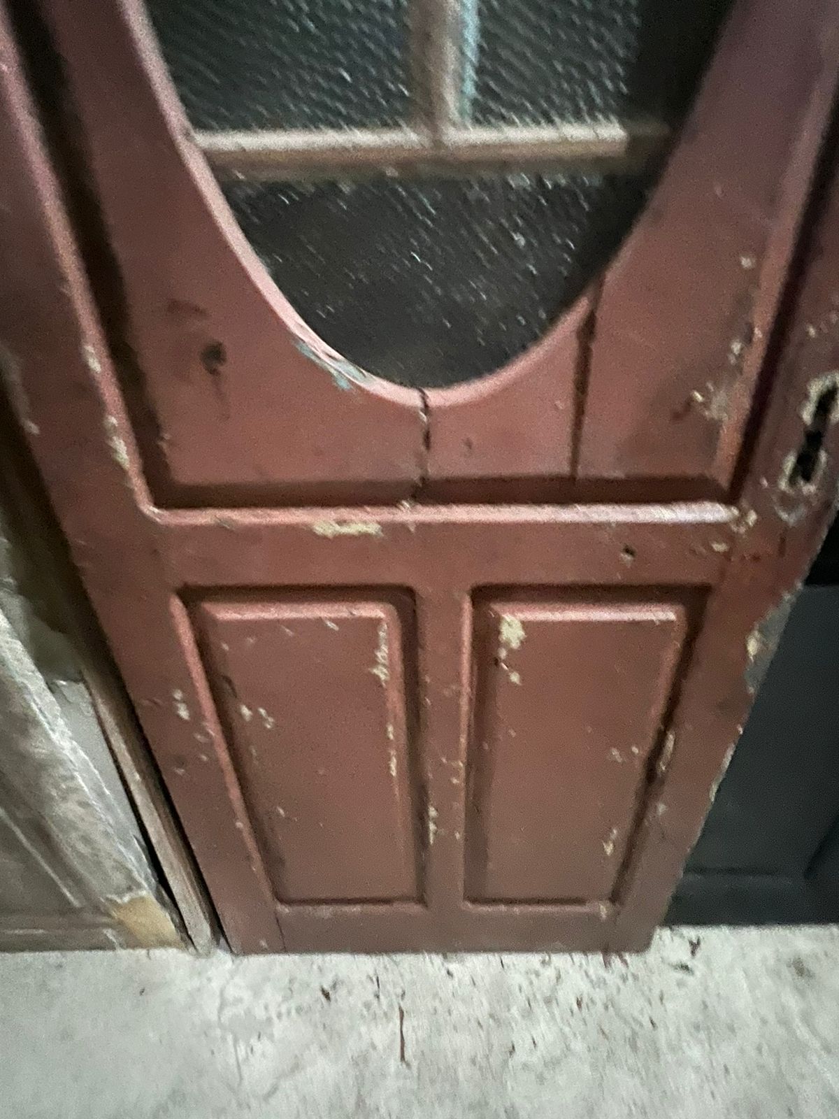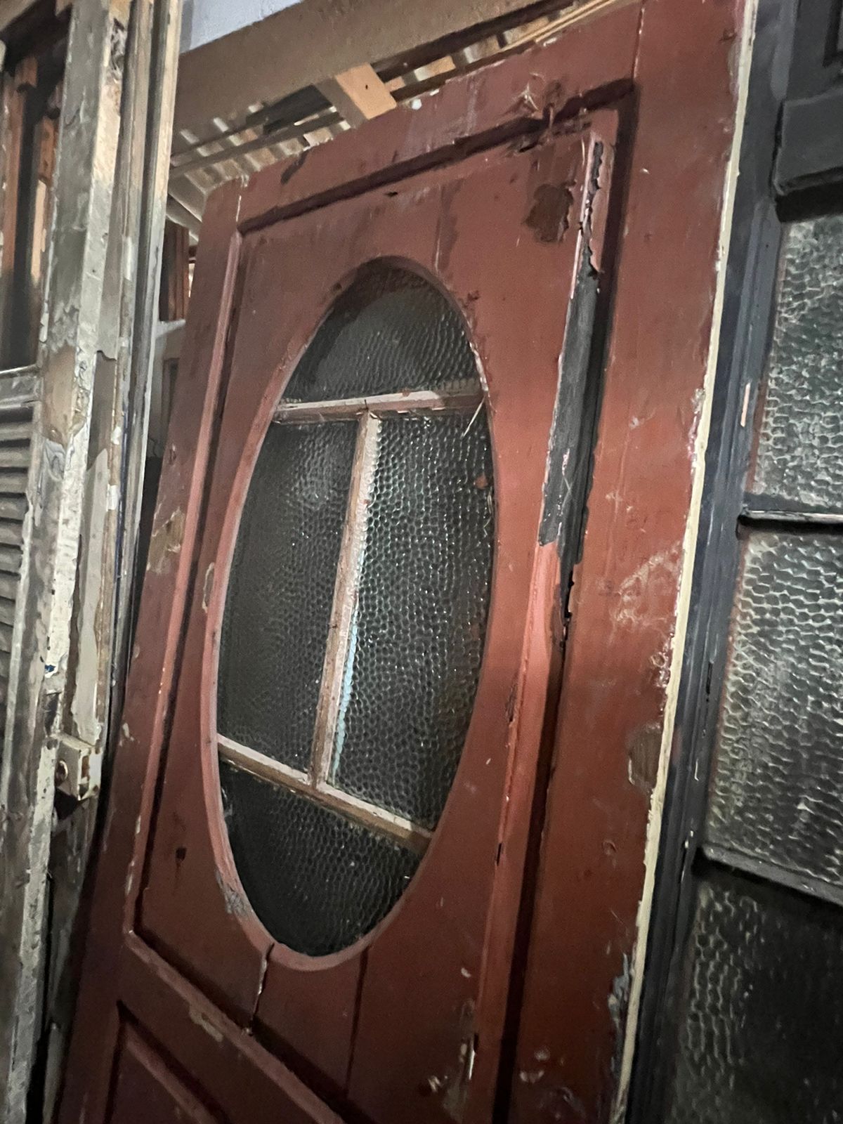 Peça antiga, sem acabamento. Podendo ser restaurada. Possui almofadas e postigo com vidro oval.