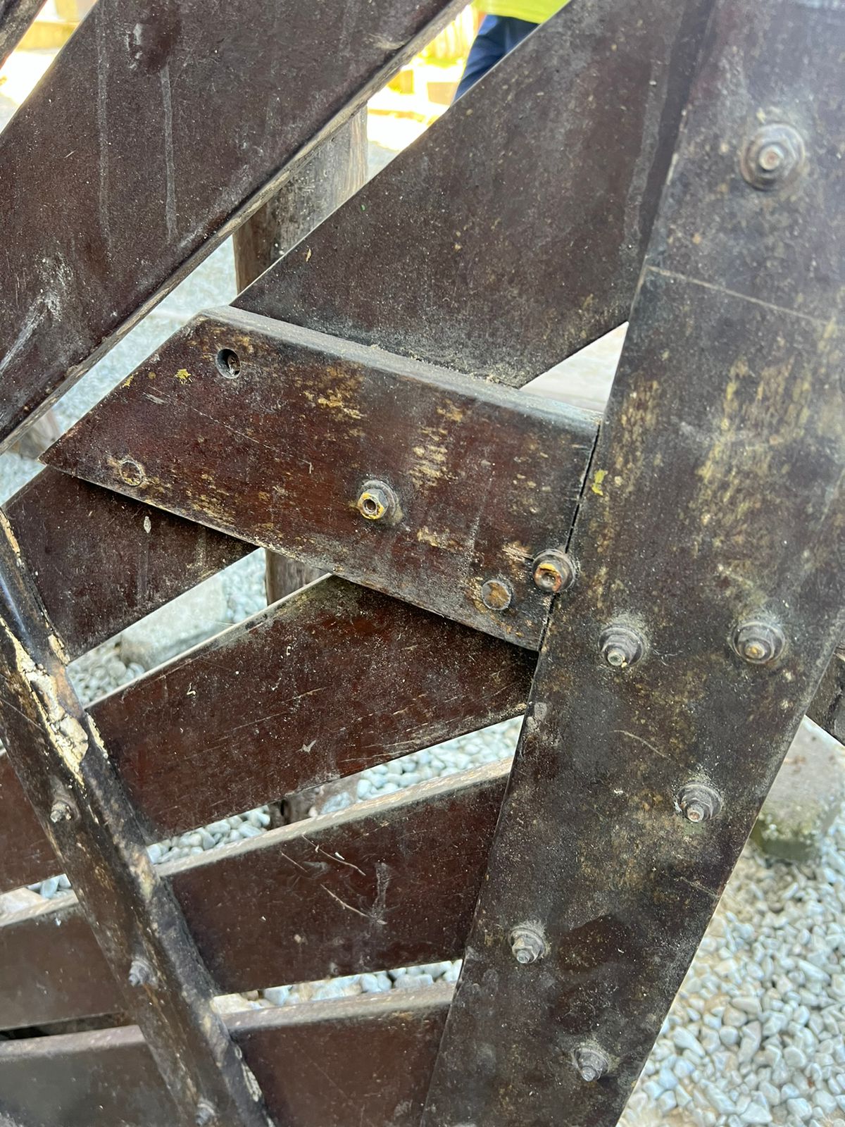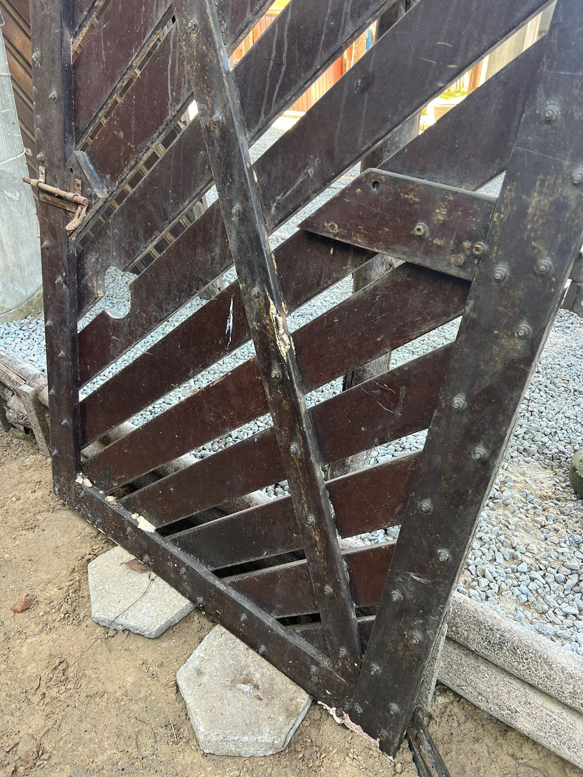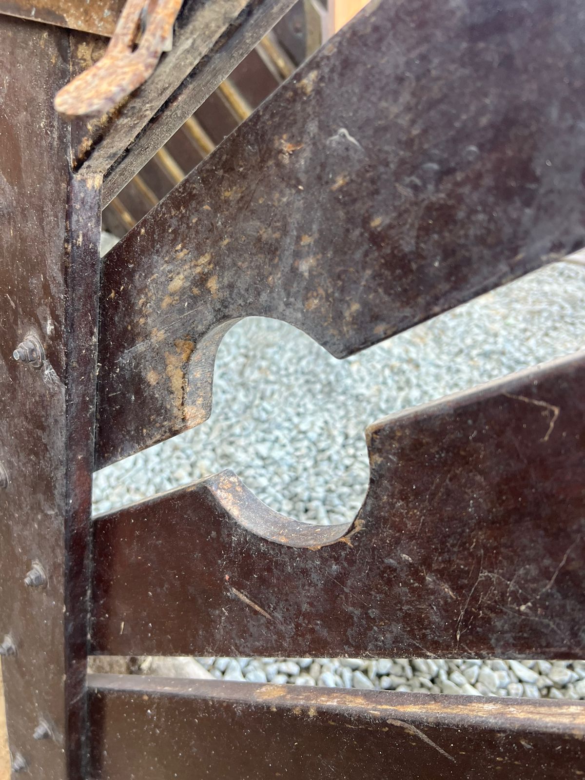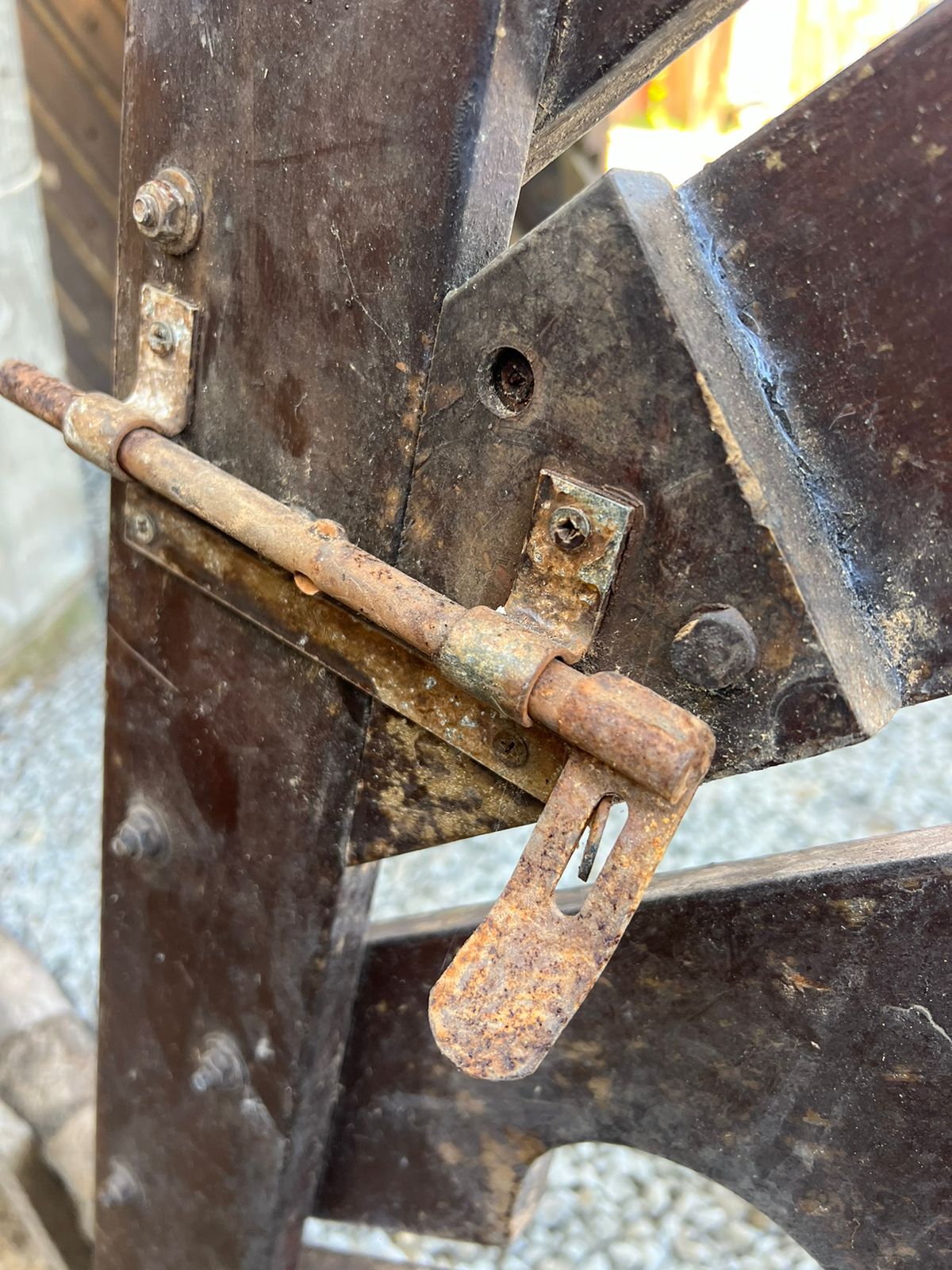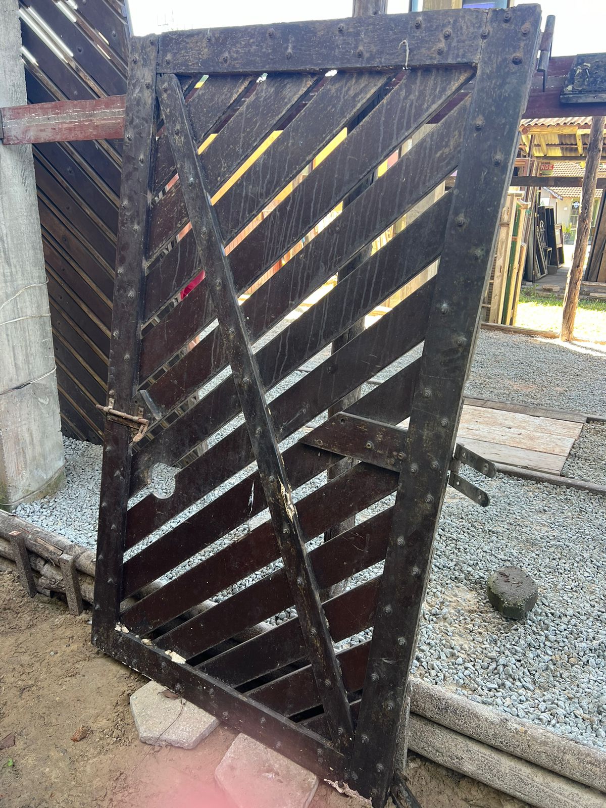 Peça de demolição, sem acabamento. Possui travessas na diagonal e fechadura.