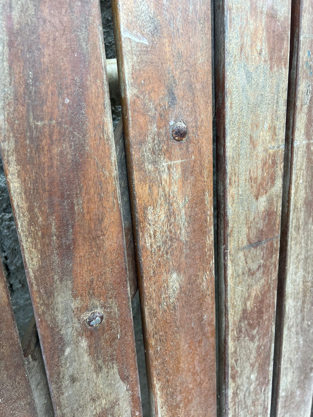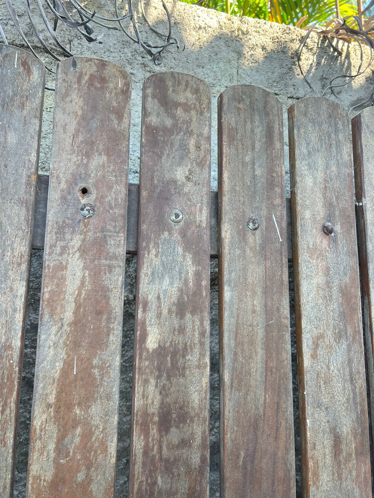 Feito de madeira maciça, sem acabamento. Possui travessas na vertical.