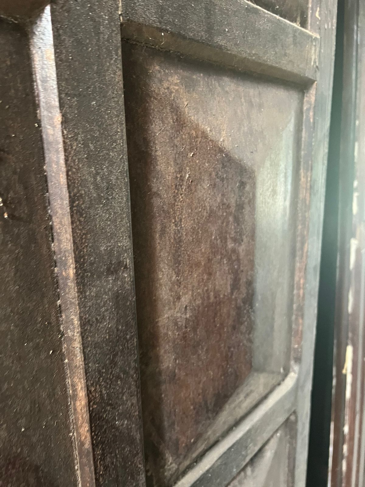 Portinhola de madeira escura.