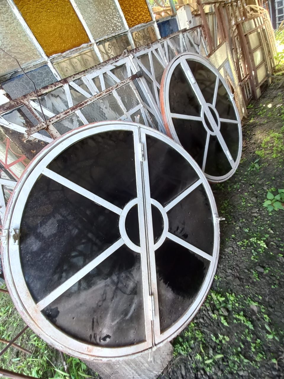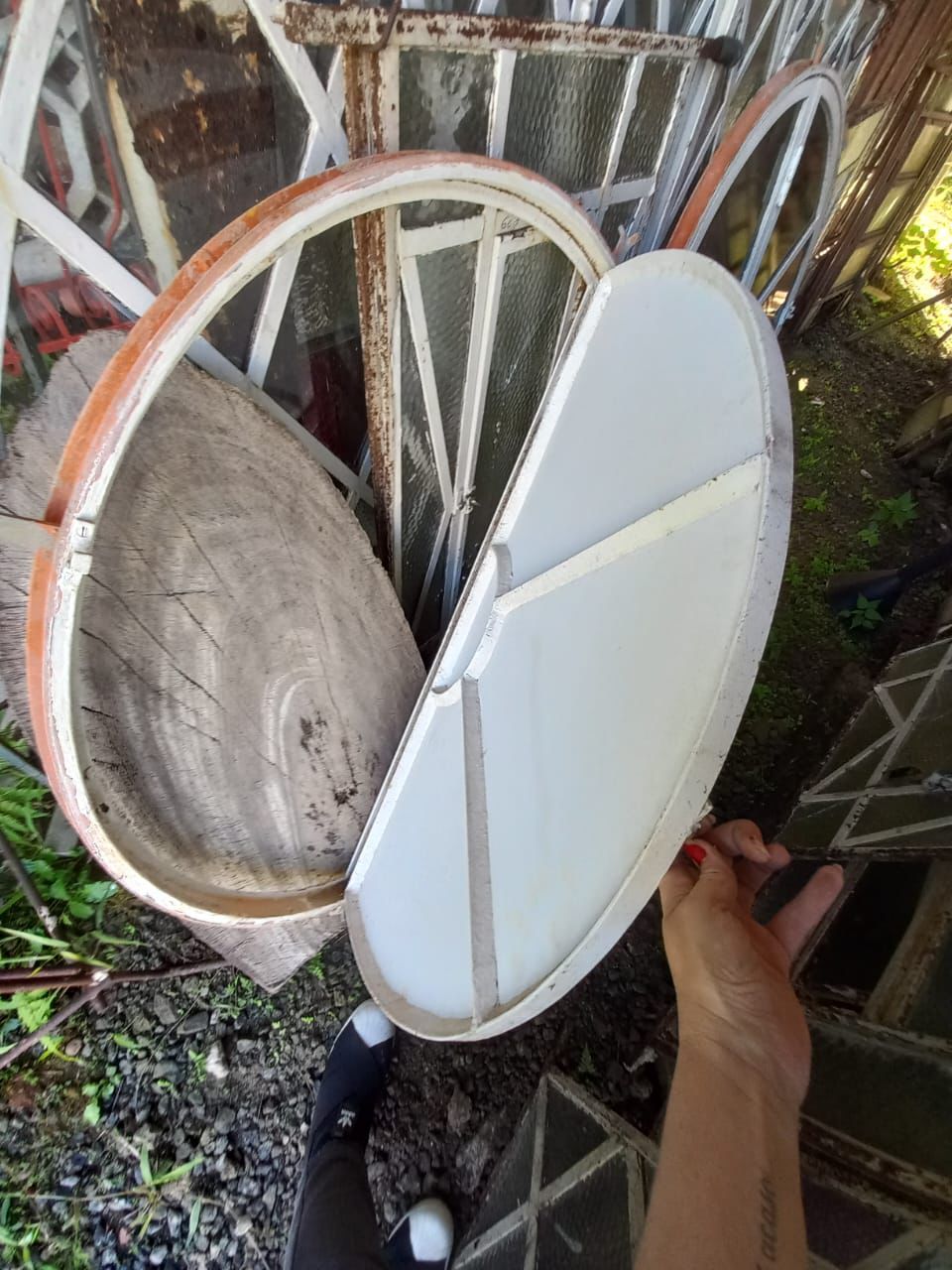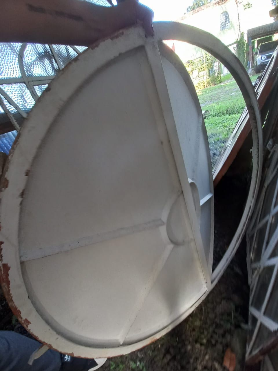 Peça antiga de demolição, sem acabamento. Possui vidros pintados de um lado.
